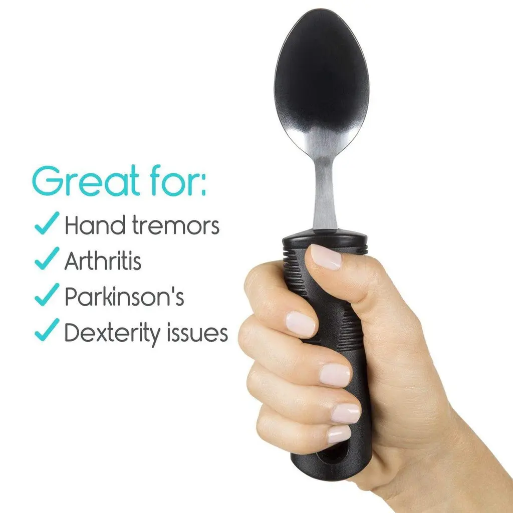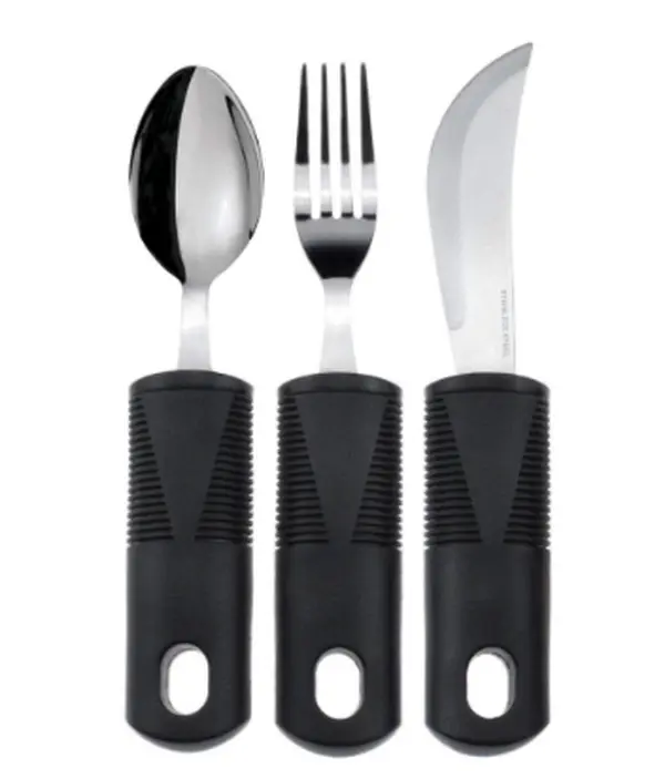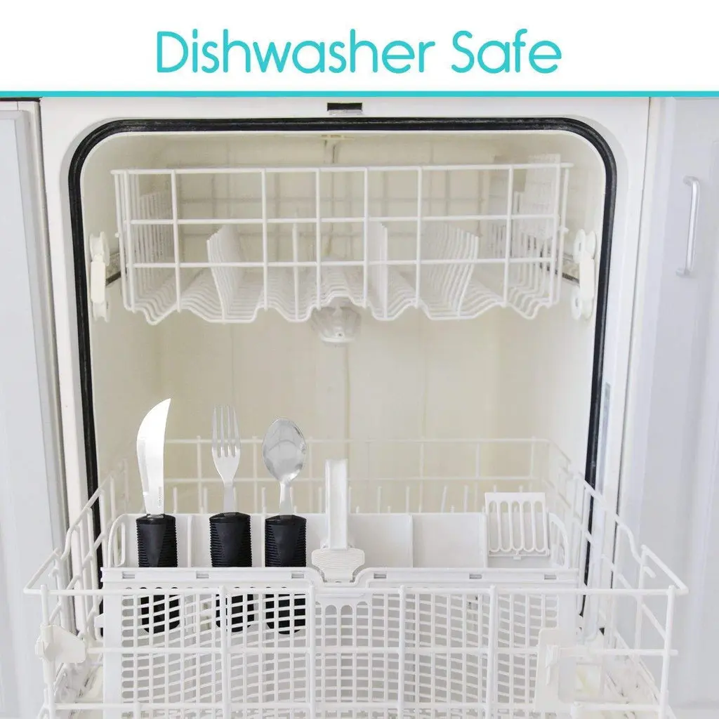 The set includes a fork, spoon, and knife made with durable stainless steel tips. The neck of each utensil is bendable, allowing you to customize the angle for more comfortable independent dining. All pieces are dishwasher safe for easy cleanup and maintenance.