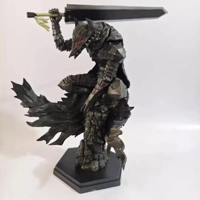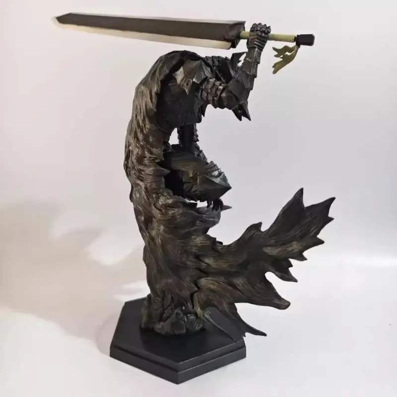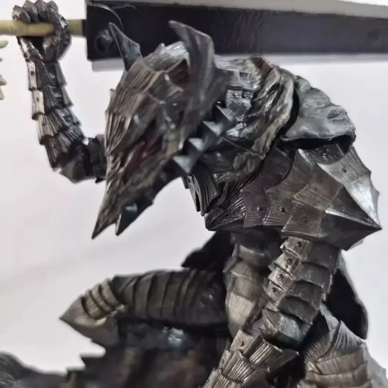 The Black Swordsman at his most terrifying. This large-scale statue captures Guts in his damaged Berserker Armor — standing on top of a crumbling pillar, Dragonslayer in hand, staring down at everything below him with pure unbridled menace. Cracked armor, relentless will, zero fear. At 9.1 in (23 cm) this is the kind of display piece that instantly tells everyone who sees it exactly what kind of collector you are.