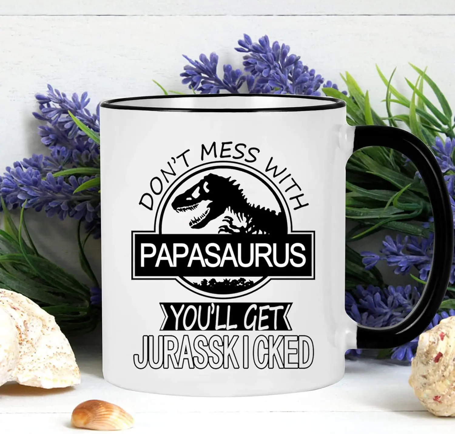 Don't Mess with Papasaurus You'll Get Jurasskicked Mug Papasaurus Cup Papasaurus Coffee Mug Birthday Fathers Day Mugs for Papa Dad Father from Daughter Son Kids Papa Gifts 11 Ounce