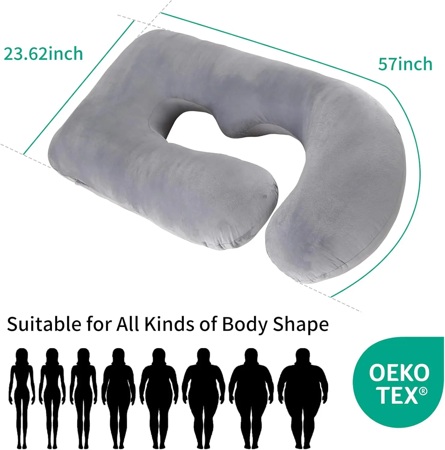 ️ 57-Inch U-Shape – Perfect for side sleeping