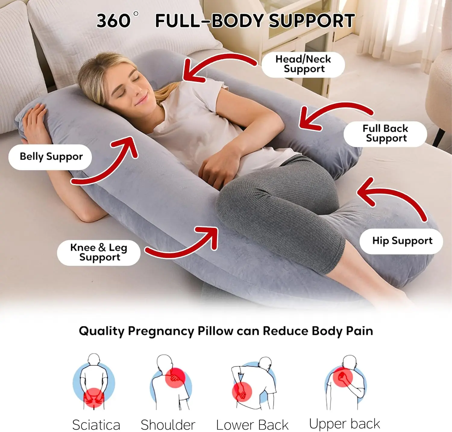 ️ Full Body Support Design – Supports back, hips & belly
