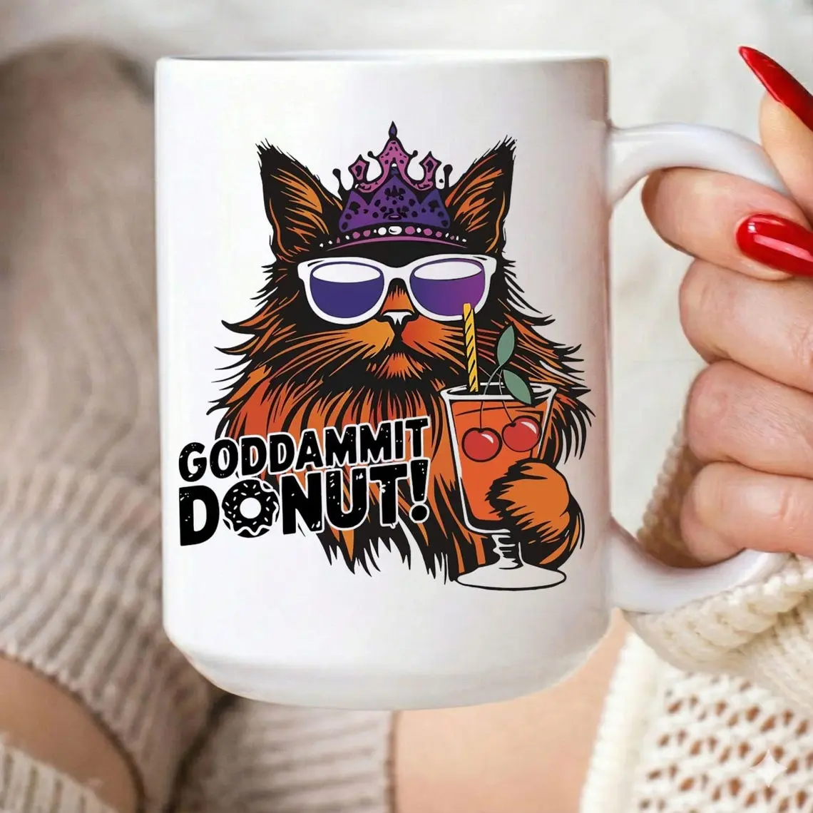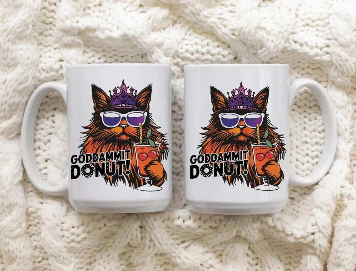 Goddammit Donut Cat Mug, Dungeon Crawler Fantasy Gift, Princess Donut Cup