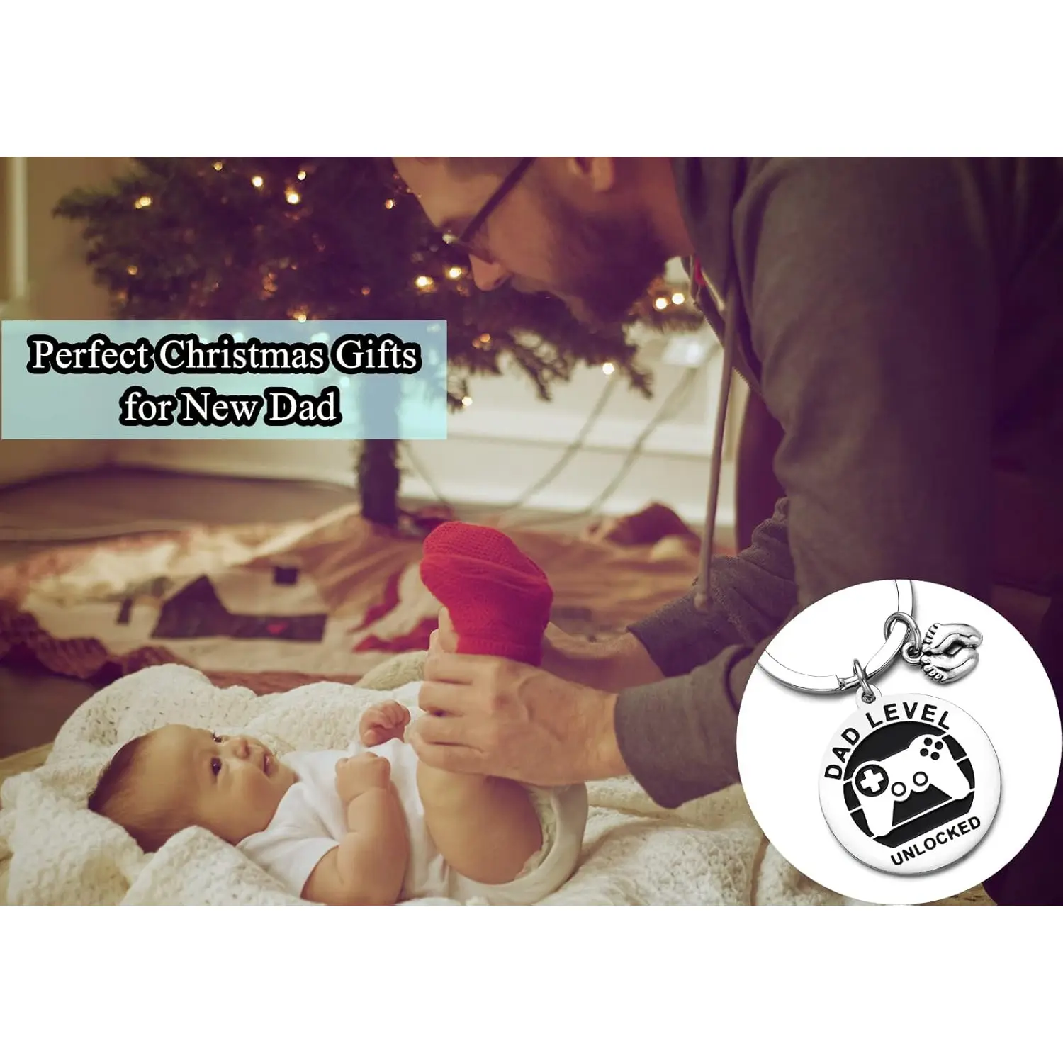 FIRST TIME DAD GIFTS FOR MEN: This first time dad keychain including engraved tag “dad level unlocked” and cute baby footprint charm, makes a perfect father’s day gift, birthday gift, Christmas gift, baby announcement gift, baby shower gift…