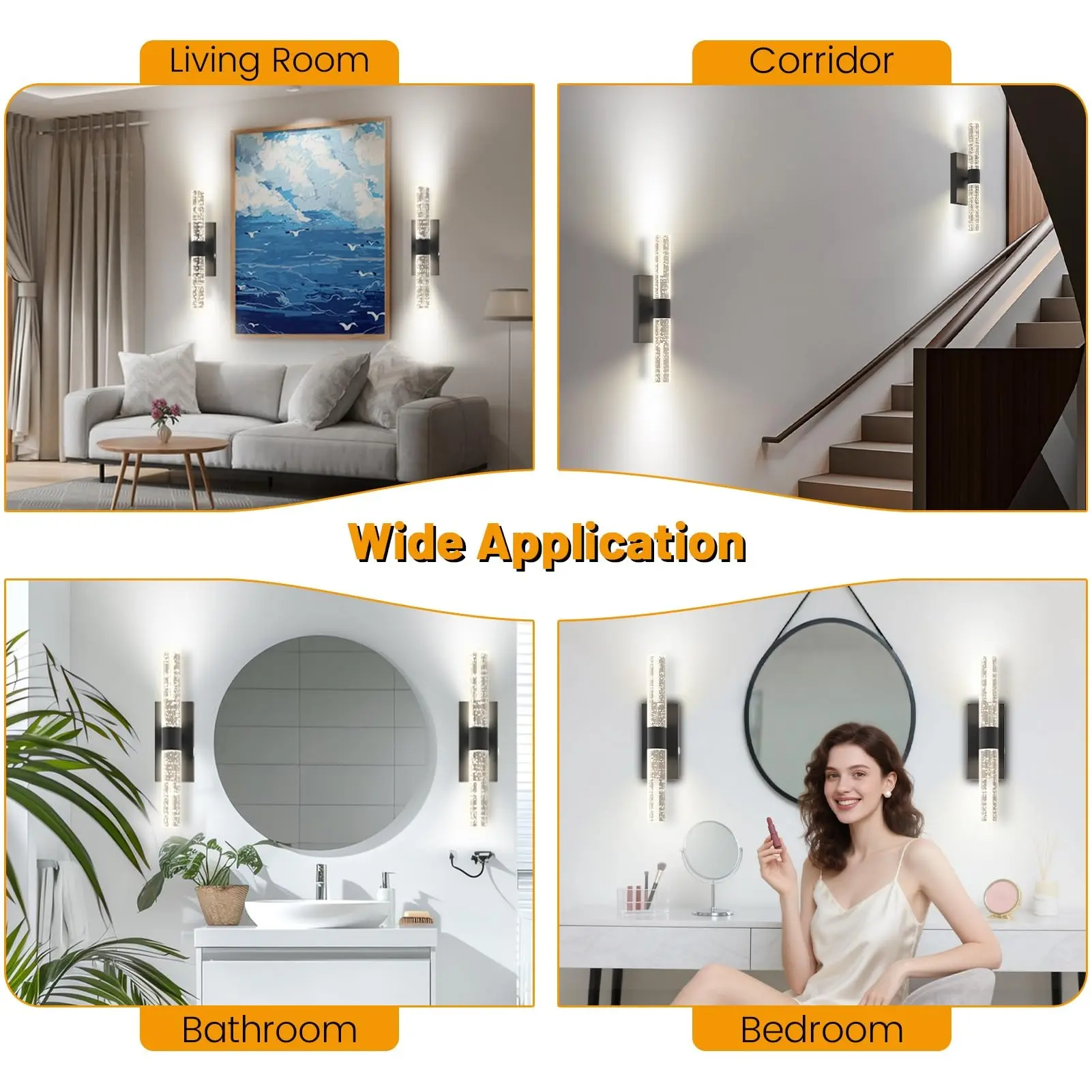 LED wall lamps, modern wall lights, warm-toned wall-mounted fixtures, suitable for living rooms, bedrooms, home offices, hallways, stairwells, and interior decorative lighting