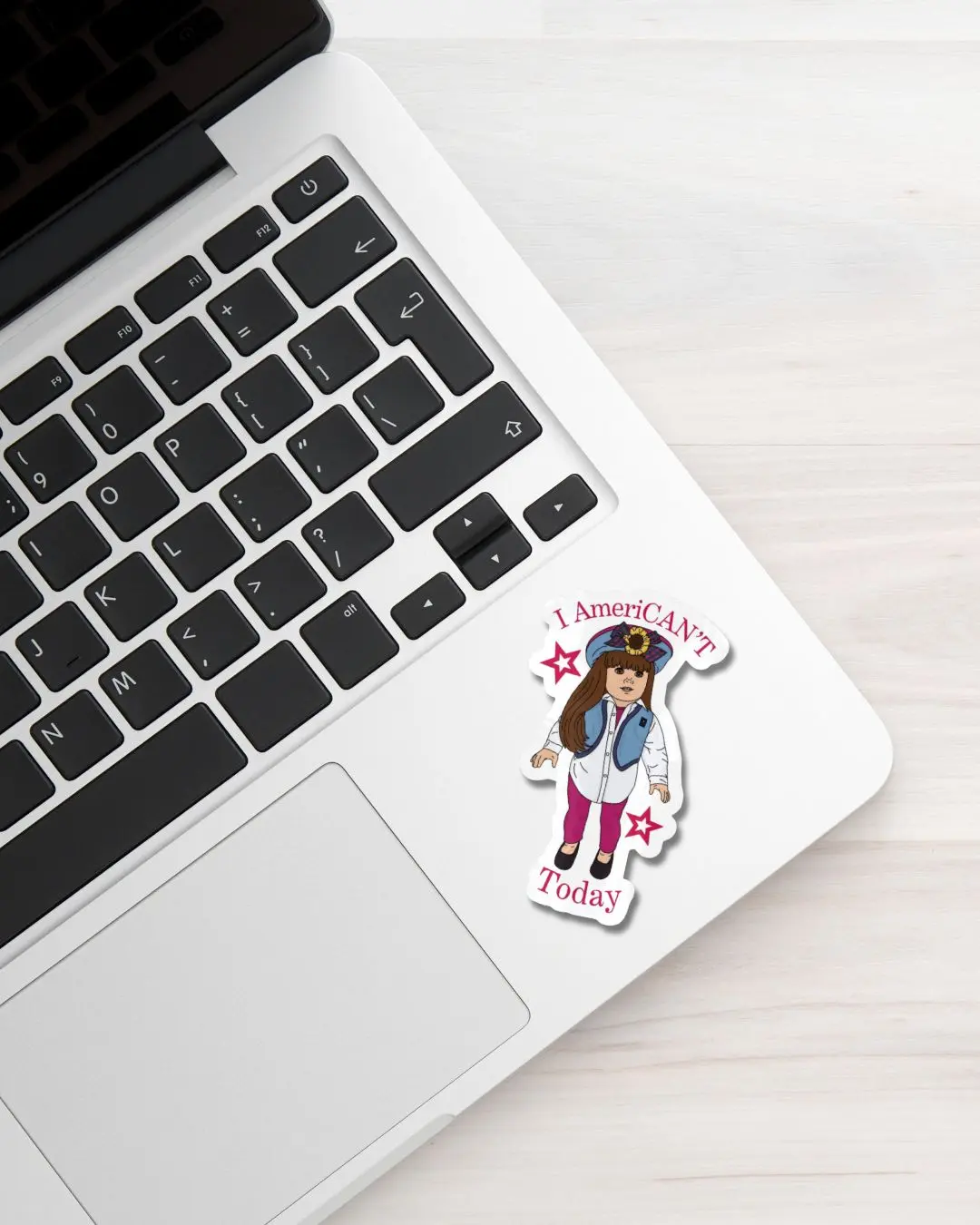It's nostalgia with a side of existential dread. This sticker features my personal American Girl of Today doll from 1996, with the most relatable mood of all time: "I American't Today"