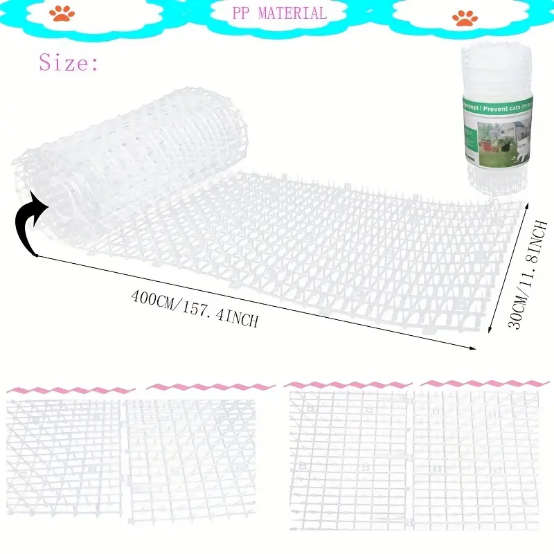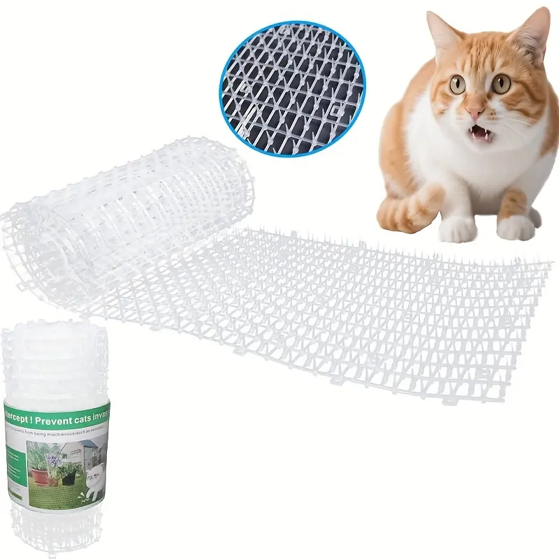 4m Anti-Cat Net & Deterrent Mat Roll, Outdoor Plastic Fence for Balcony, Roof, Garden & Flower Beds, Pet Barrier to Keep Cats Away