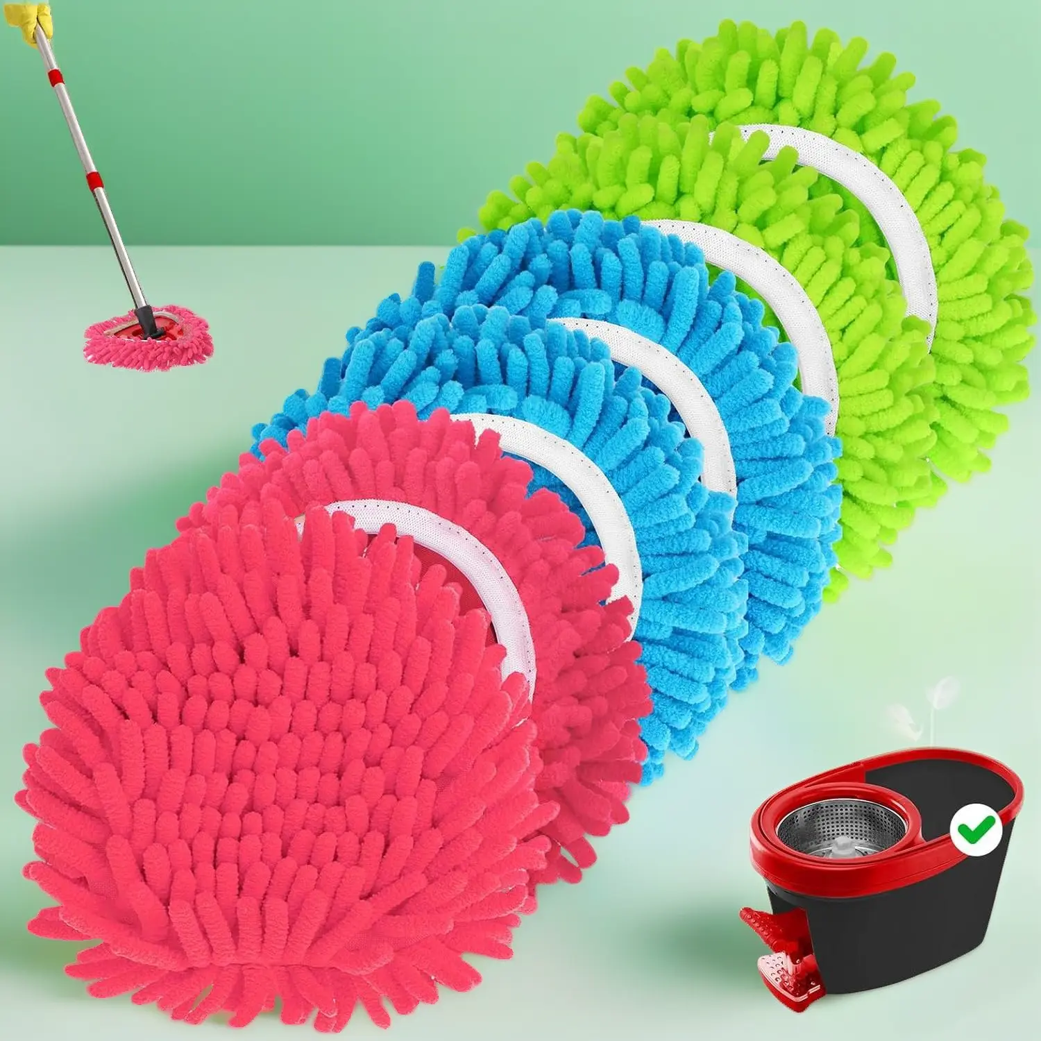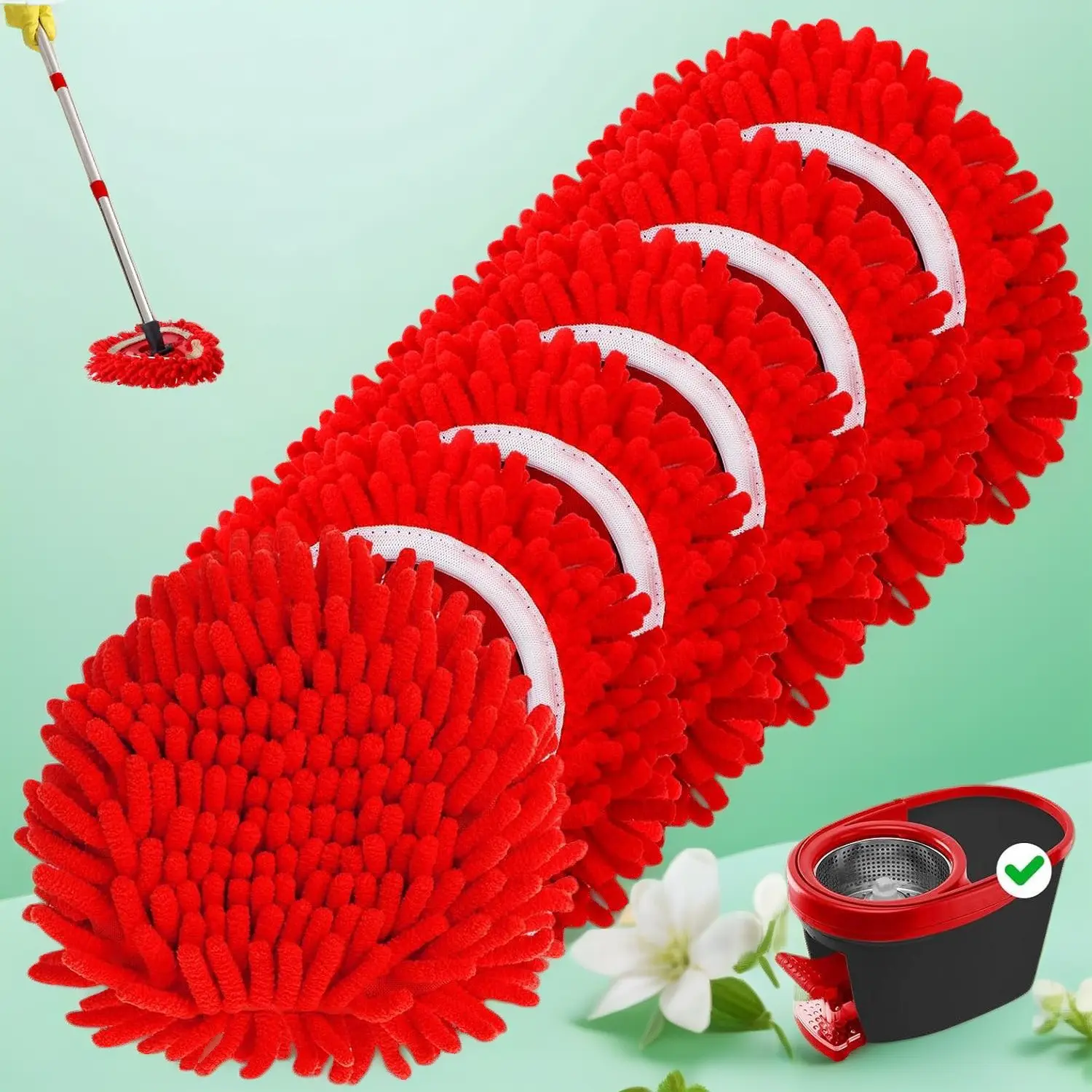 6 Pack Chenille Mop Heads Replacements Compatible with 1 Tank System Chenille Duster Replacement Heads Microfiber Spin Mop Refill Pads Reusable Dust Refills for Floor Cleaning (Red)