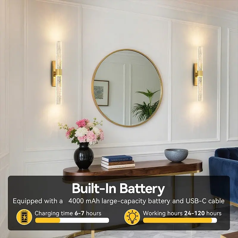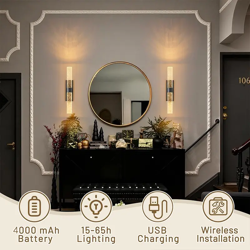 2Pcs LED Wall Lamps, Modern Crystal Decorative Wall Lights, USB-Rechargeable, Remote-Controlled Dimming, For Living Room Feature Walls, Hotel Corridors and Hallways, Luxury Home Interior Wall Lighting