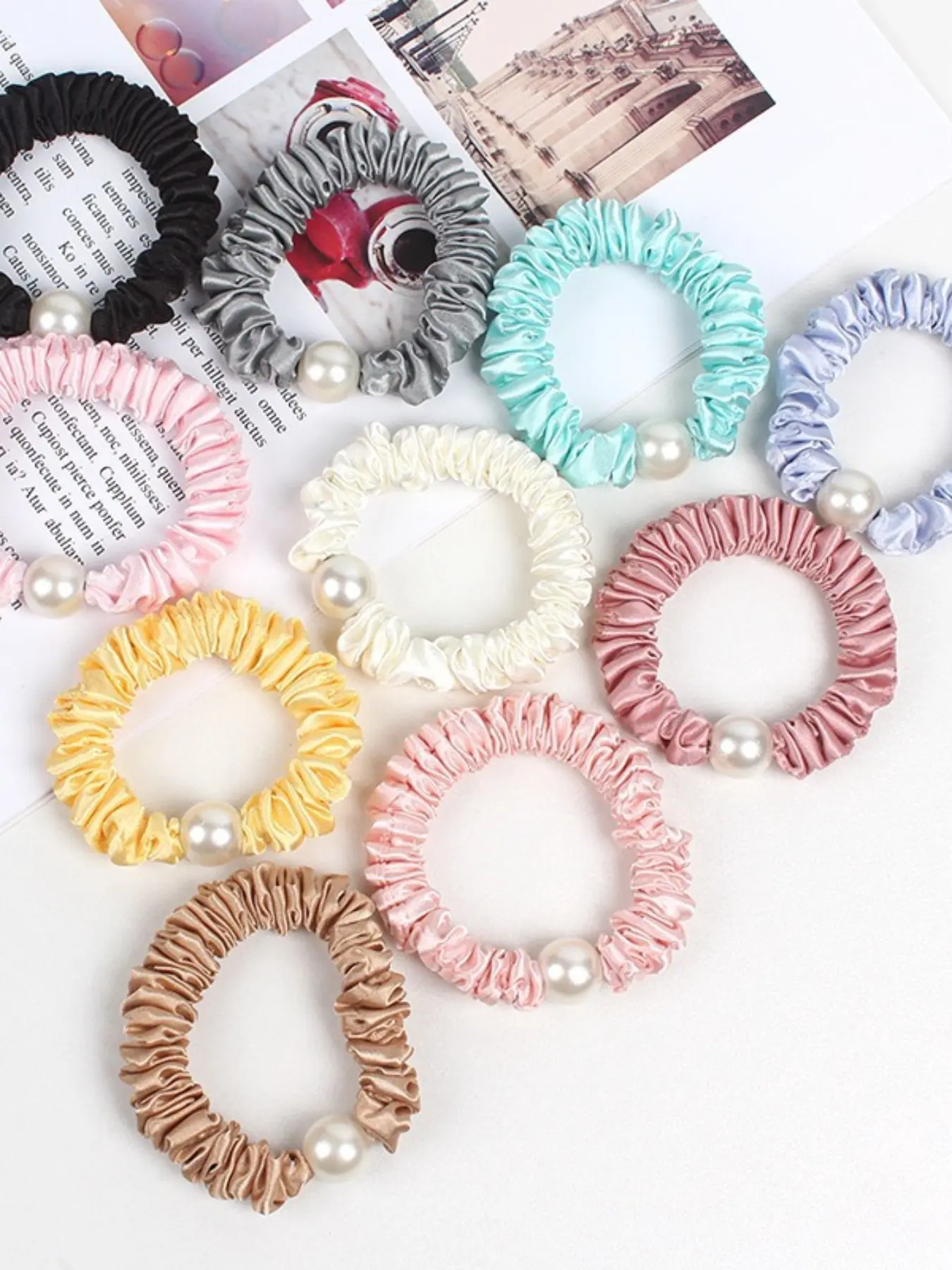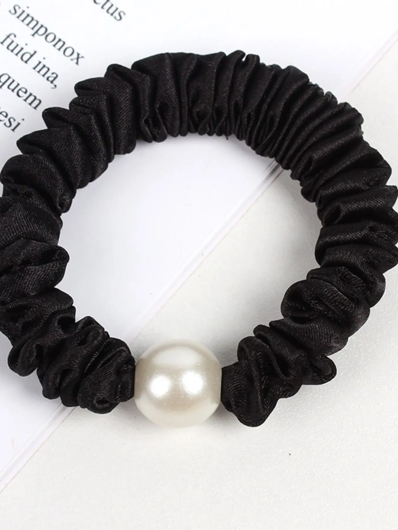 5. KatchMe Gift, Elegant Satin Faux Pearl Hair Tie (Surprise Color) 1 Piece, Elastic Hair Band for Women, Gentle on Hair, Hair Accessories