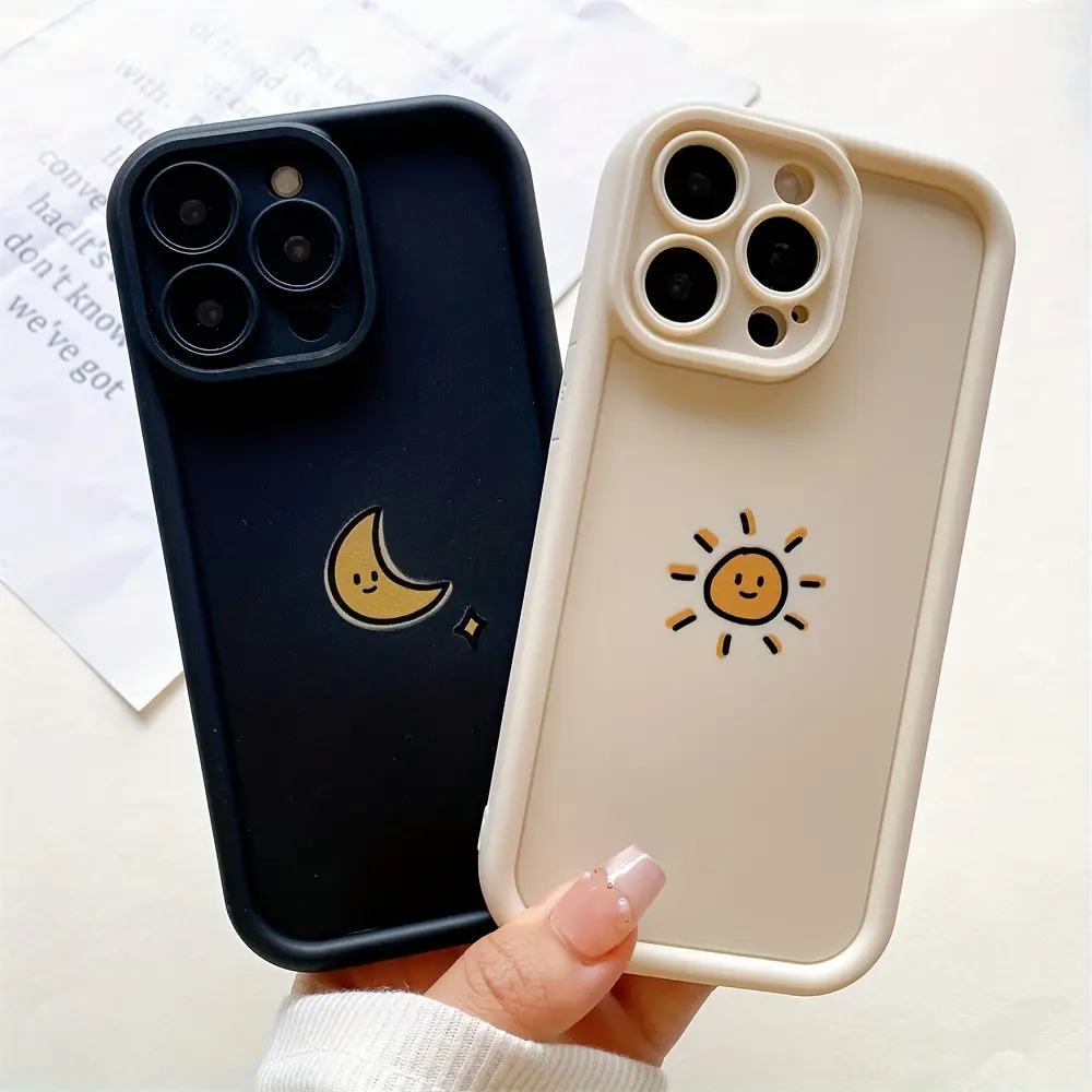 Couple Sun Moon Pattern Case for iPhone 17 16 15 14 Pro Max 13 12 11 XR XS Plus Shockproof Drop Protection Rugged Durable Silicone Cover