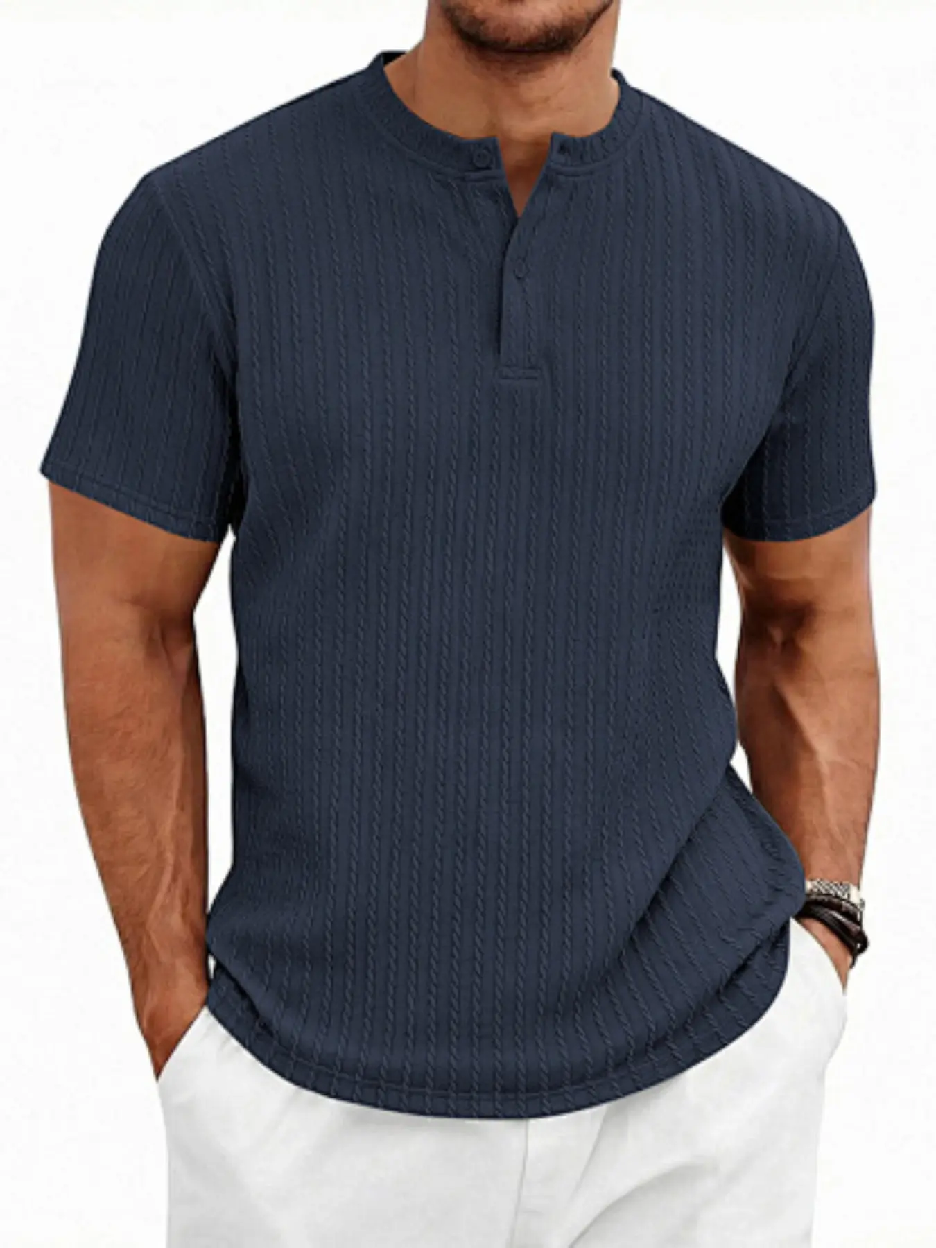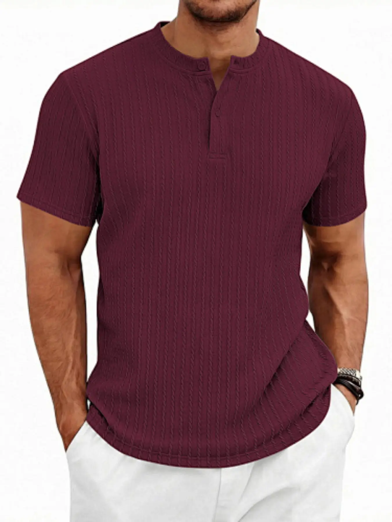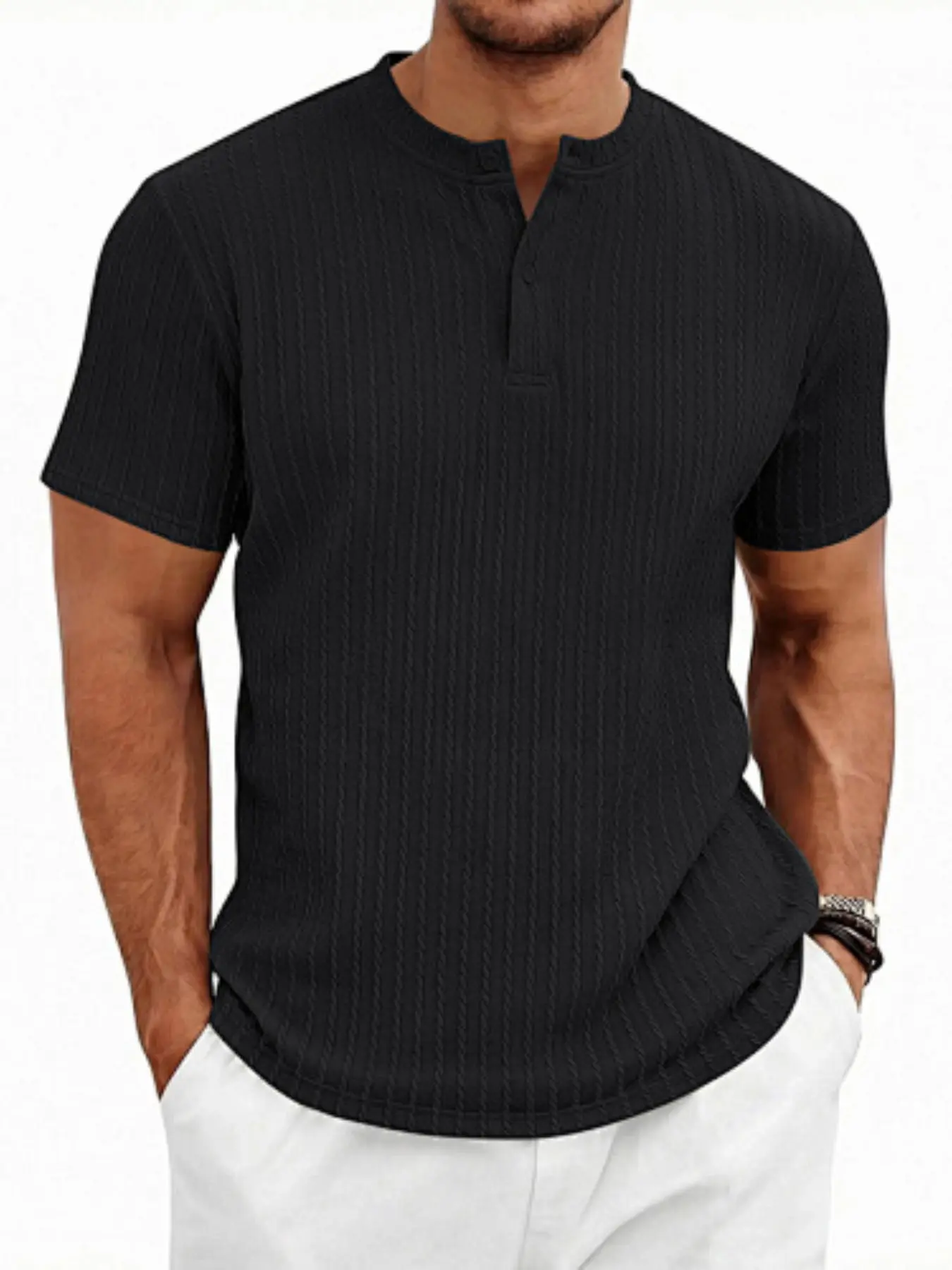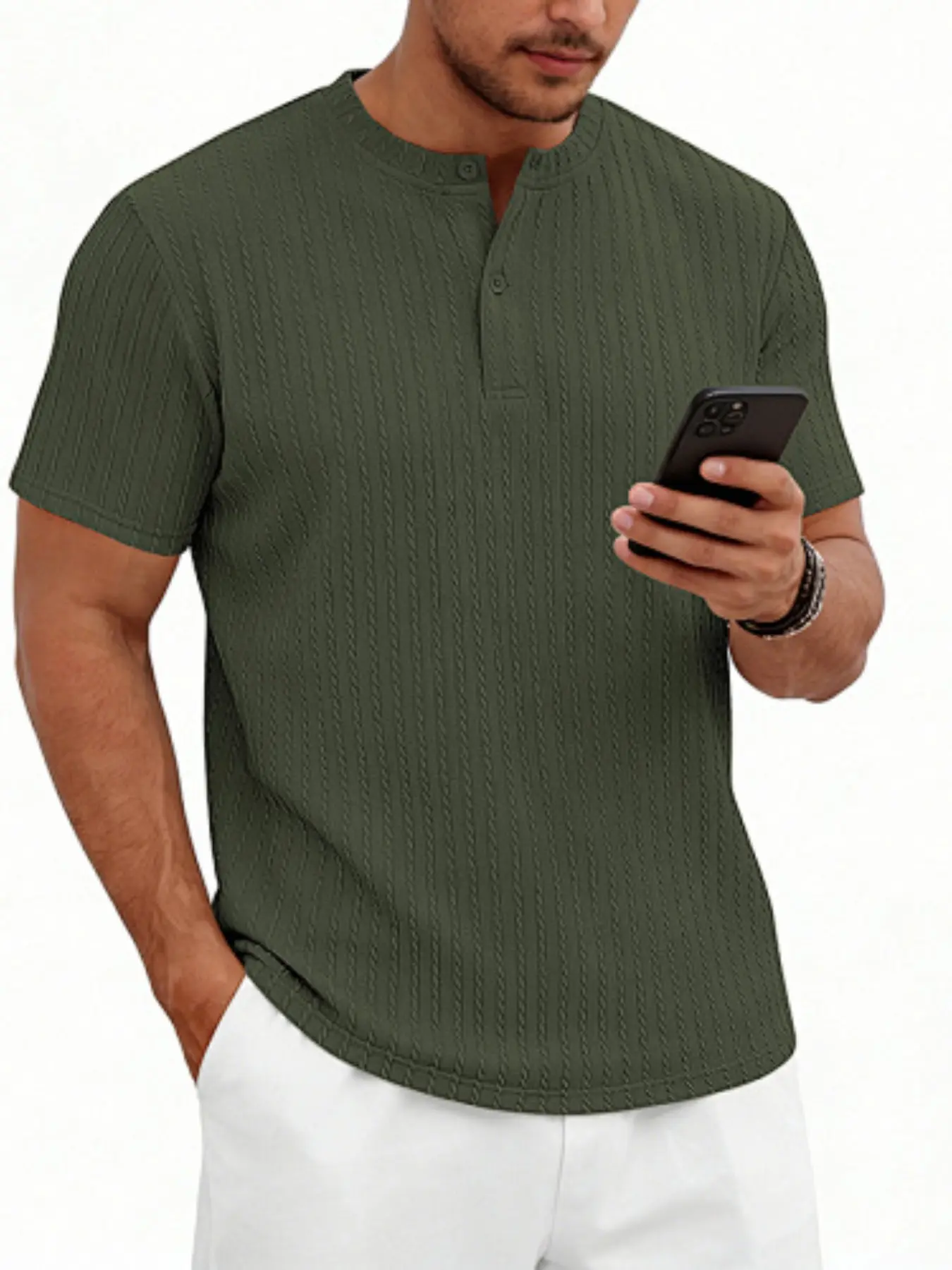 Men's summer Henry collar texture short sleeved shirt! Slimming and muscle enhancing, breathable and sweat free, suitable for commuting, home and vacation, suitable for plus size men with closed eyes