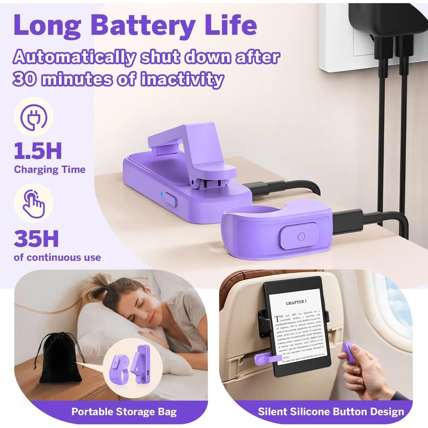 Page Turner Ring for Kindle,Remote Control for iPhone iPad Android Tablets E-Readers,Clicker Page Turner for Kindle Accessories for Camera Video Record&Shutter Selfie (Purple)
