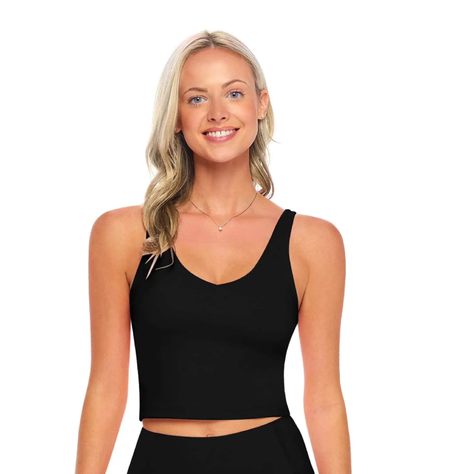 Crafted from a premium polyamide-spandex blend, this sports bra delivers ultra-soft feel, breathable comfort, and 4-way stretch, allowing unrestricted movement during workouts or daily wear.