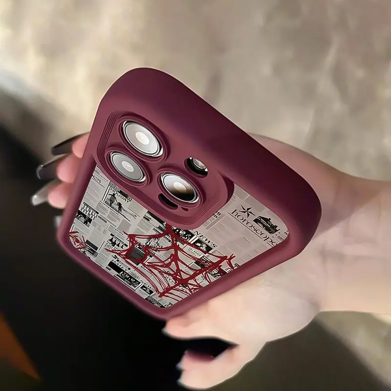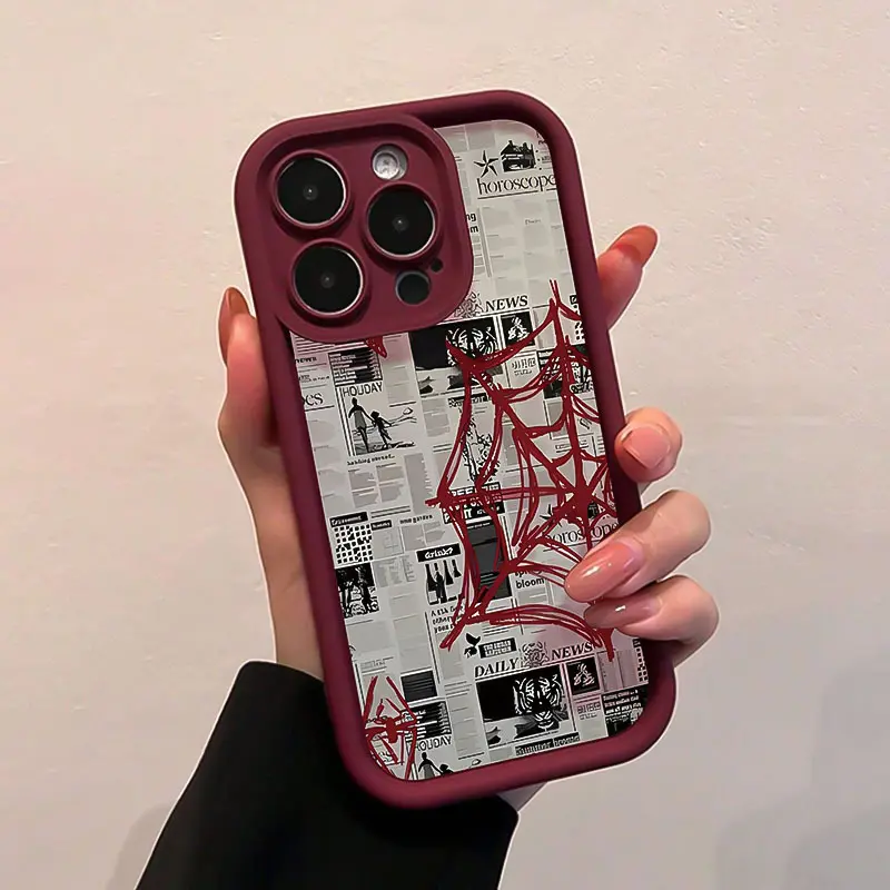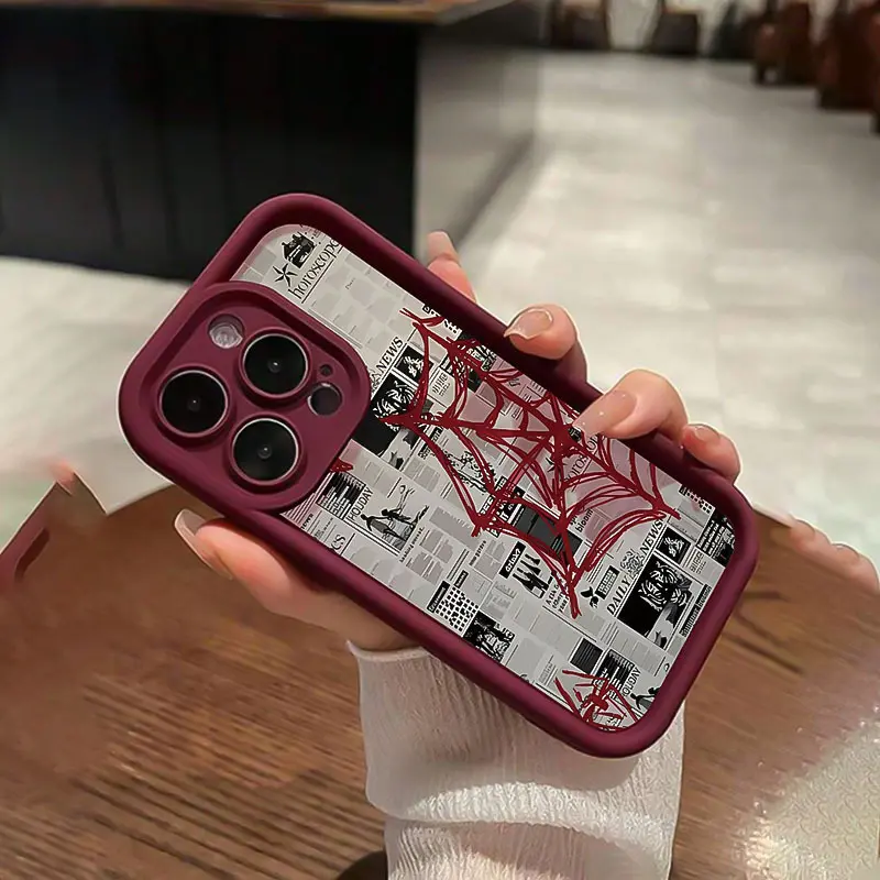 Phone case: C703 Wine Red High Bamboo Spiderweb Design Phone Case, Compatible with iPhone 17 E Air Pro ProMax iPhone16 15 14 Plus 13 12 Mini 11 X XS XR