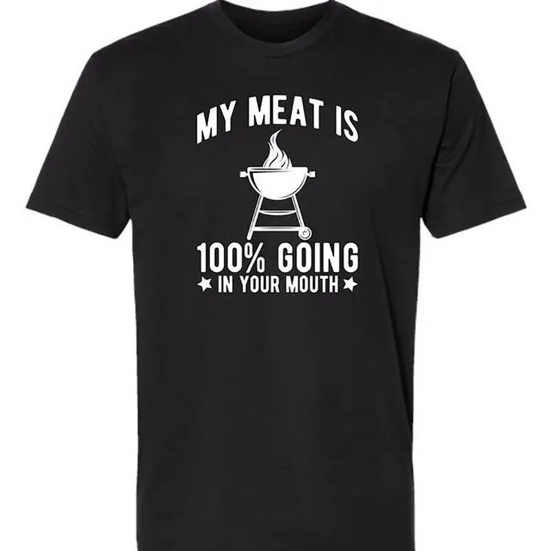 My Meat Is 100% Going In Your Mouth - Funny BBQ Themed Unisex Black Short Sleeve T-Shirt Golf Gift T-Shirt For Men And Women