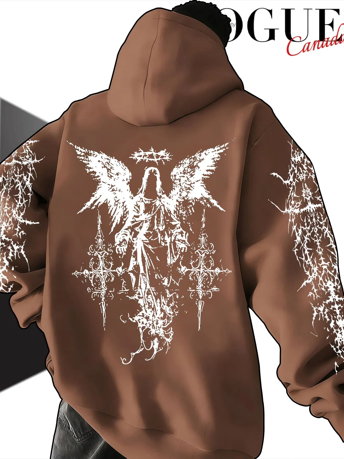 5. Men's Hooded Sweatshirt Fall Winter, Thorns Angel Cross Print, Gothic Style Loose Fit, Casual Random Pattern, Non-Outer Vest