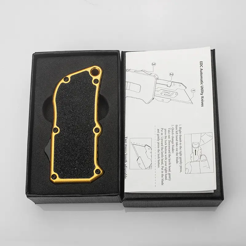 Box Cutter Pocket Knife, Utility Knife Retractable,EDC Auto Box Cutters Heavy Duty Cardboard Cutter, Razor Blade Boxcutters Box Cutter Folding Knife, With 5pcs Spare Blades