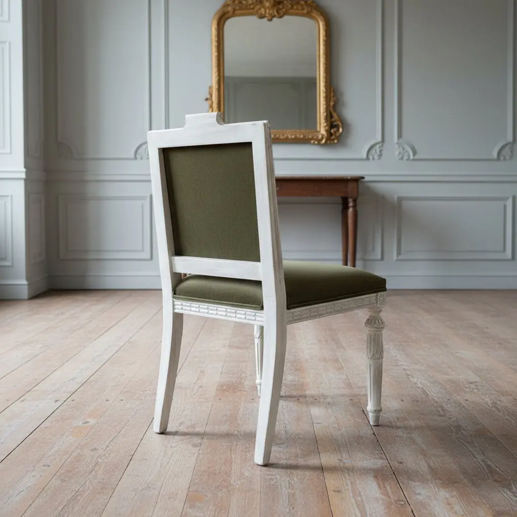 Introducing the Gustavian Dining Chair by Manoir — a graceful nod to 18th-century Swedish refinement. With its square back, hand-carved floral motifs, and fluted legs, this piece captures the quiet elegance of the Gustavian era while offering modern-day practicality.