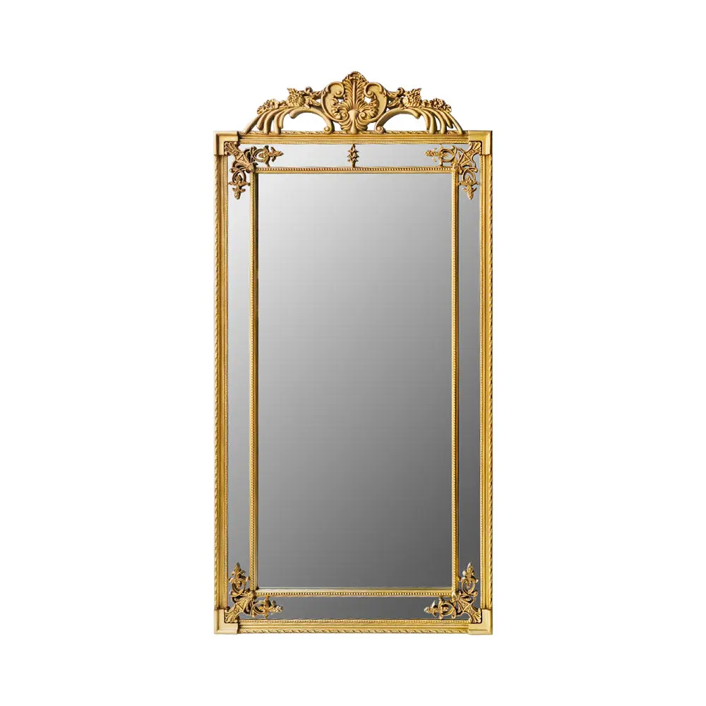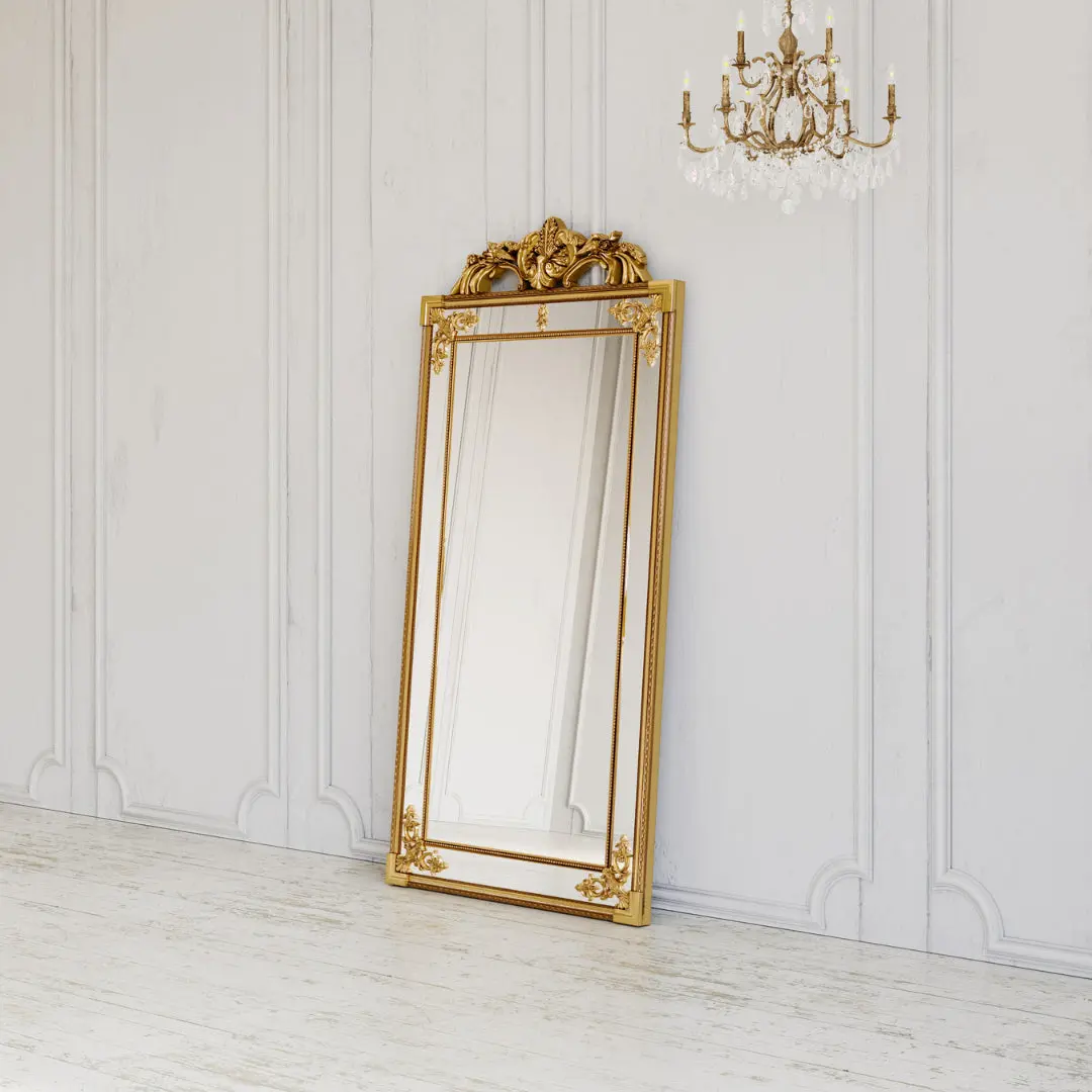Manon Mirror: French Gilt Gold Floor Mirror with Intricate Carvings