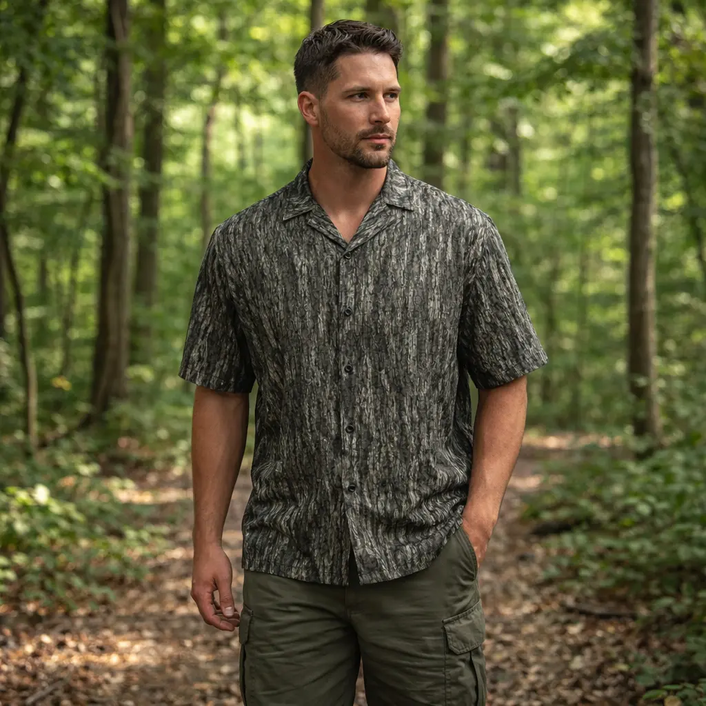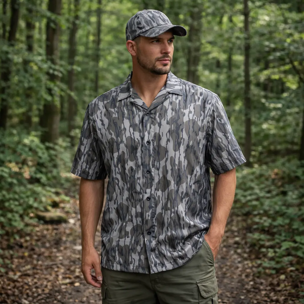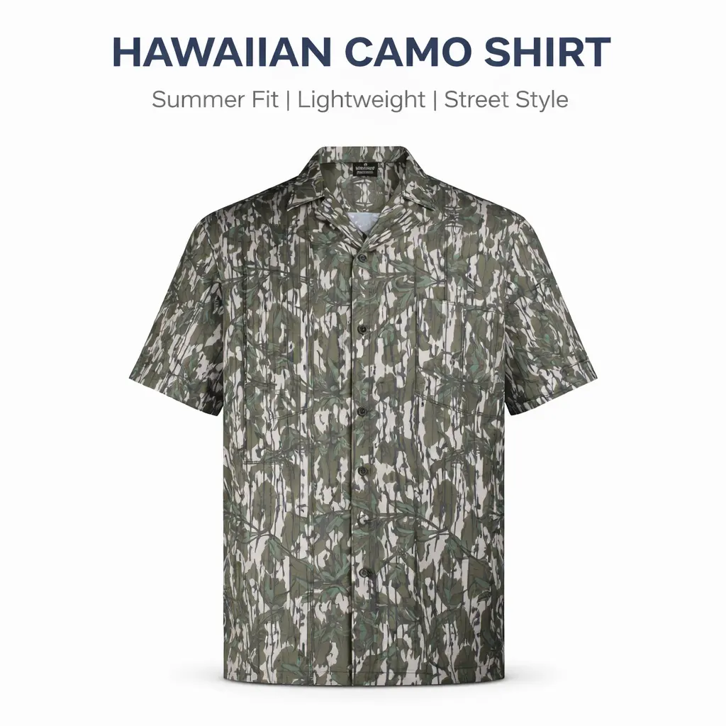 MEN’S CAMO HAWAIIAN SHIRT LIGHTWEIGHT SHORT SLEEVE BUTTON DOWN – SUMMER BEACH & STREETWEAR
