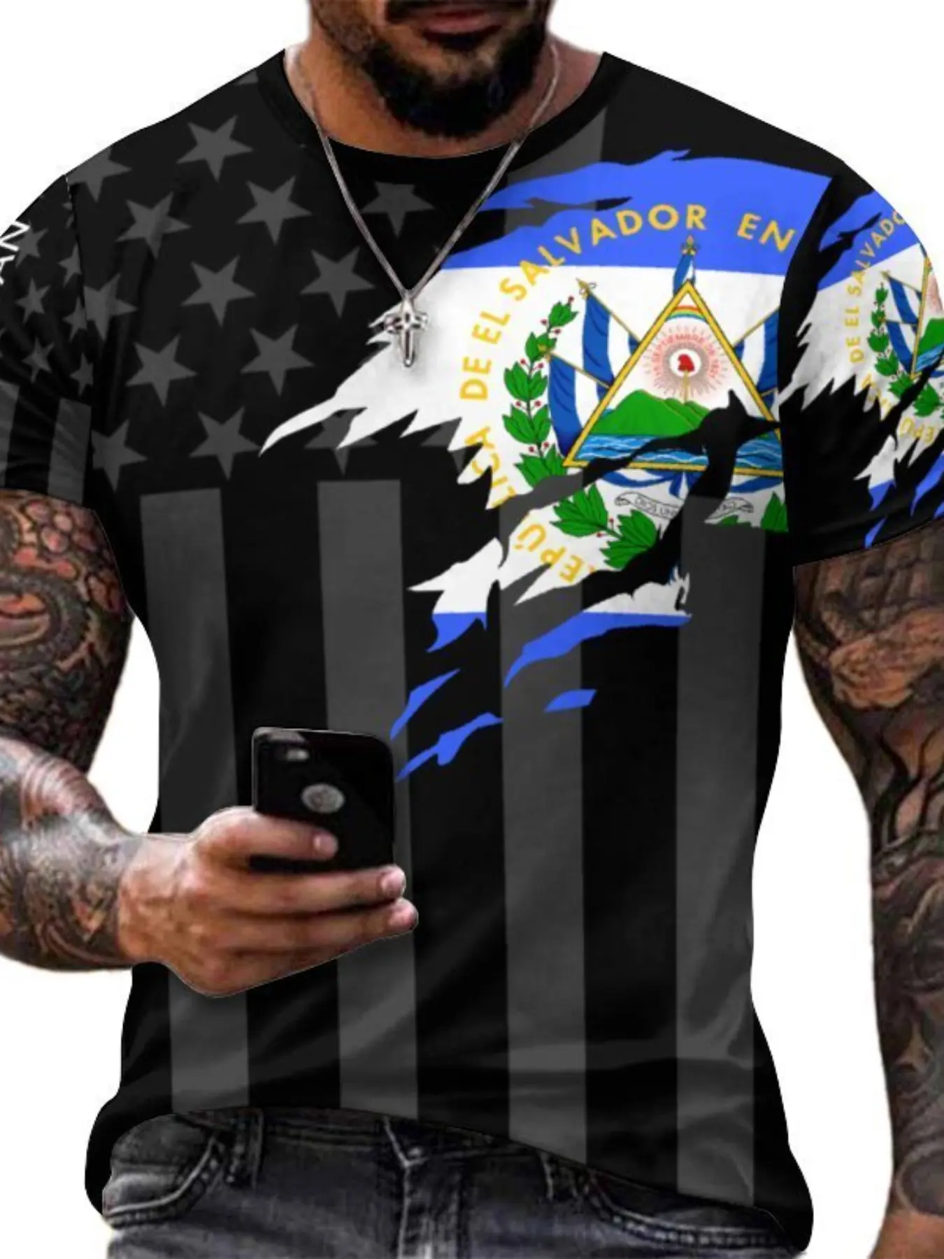 Men's summer casual T-shirt gift box set, lightweight and breathable polyester fabric, religious church-themed design, fitted H-shape, suitable for all seasons, versatile for everyday wear