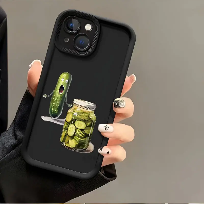 Phone case: Funny pickled cucumber creative pattern, new groove stepped mobile phone case, fun, simple and fashionable personality trend for men and women suitable for iPhone 17 E Air Pro ProMax iPhone16 15 14 Plus 13 12 Mini 11 X XS XR