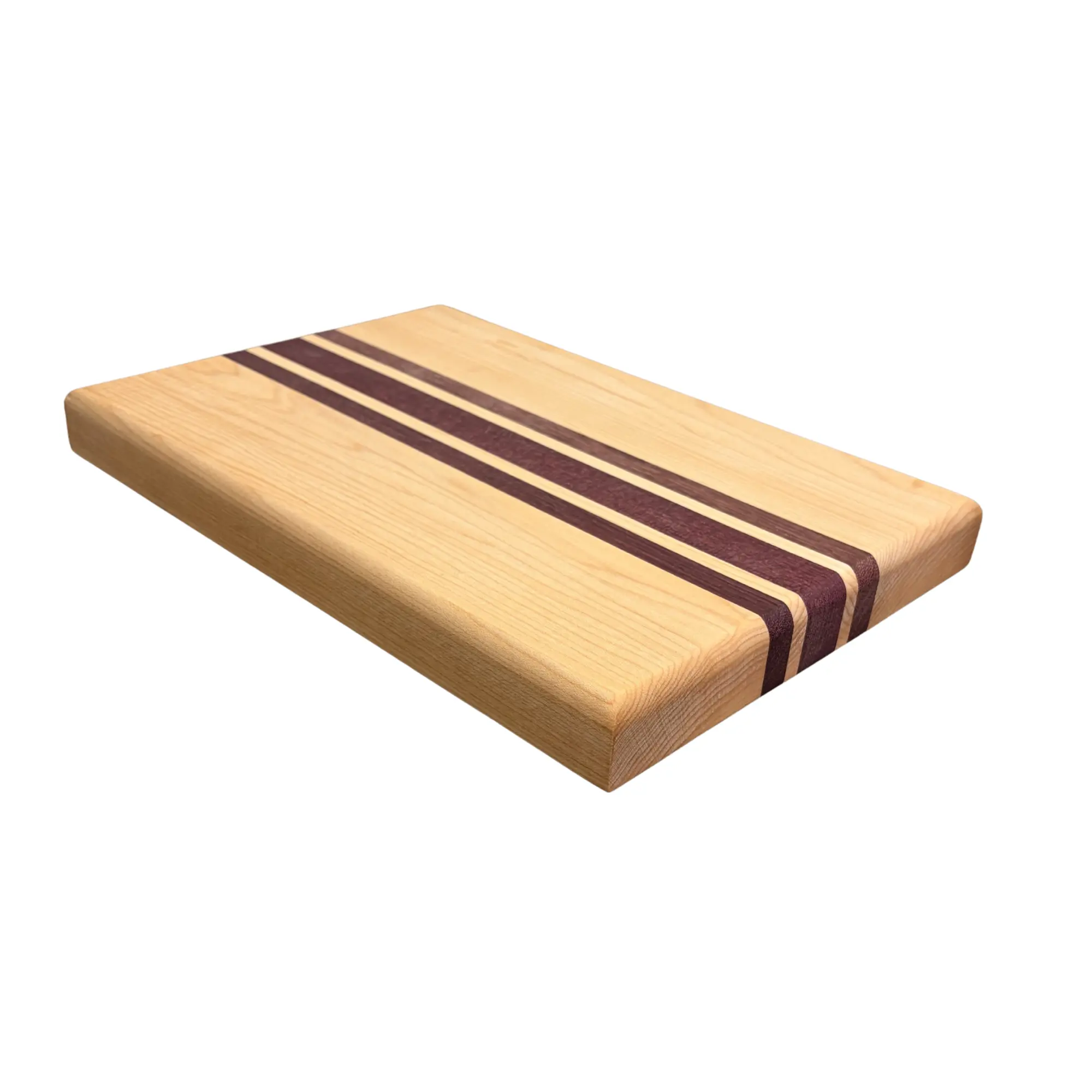 The Nantucket Cutting Board combines the clean, light tones of maple with the rich, vibrant contrast of purpleheart, creating a striking two-wood design that stands out in any kitchen or on any table. The natural variation in each board ensures a unique piece with its own distinct character.