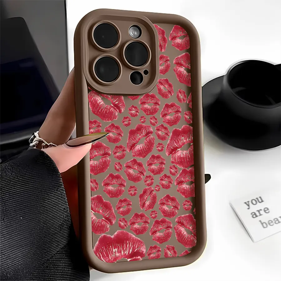 Phone Case: 1pc Red Lip Print Phone Case Suitable for Apple iPhone 17 E Air Pro ProMax iPhone16 15 14 Plus 13 12 Mini 11 X XS XR Antidrop Softshell Shock Proof All Inclusive Lens Protection Girlish Style Cute Can Be