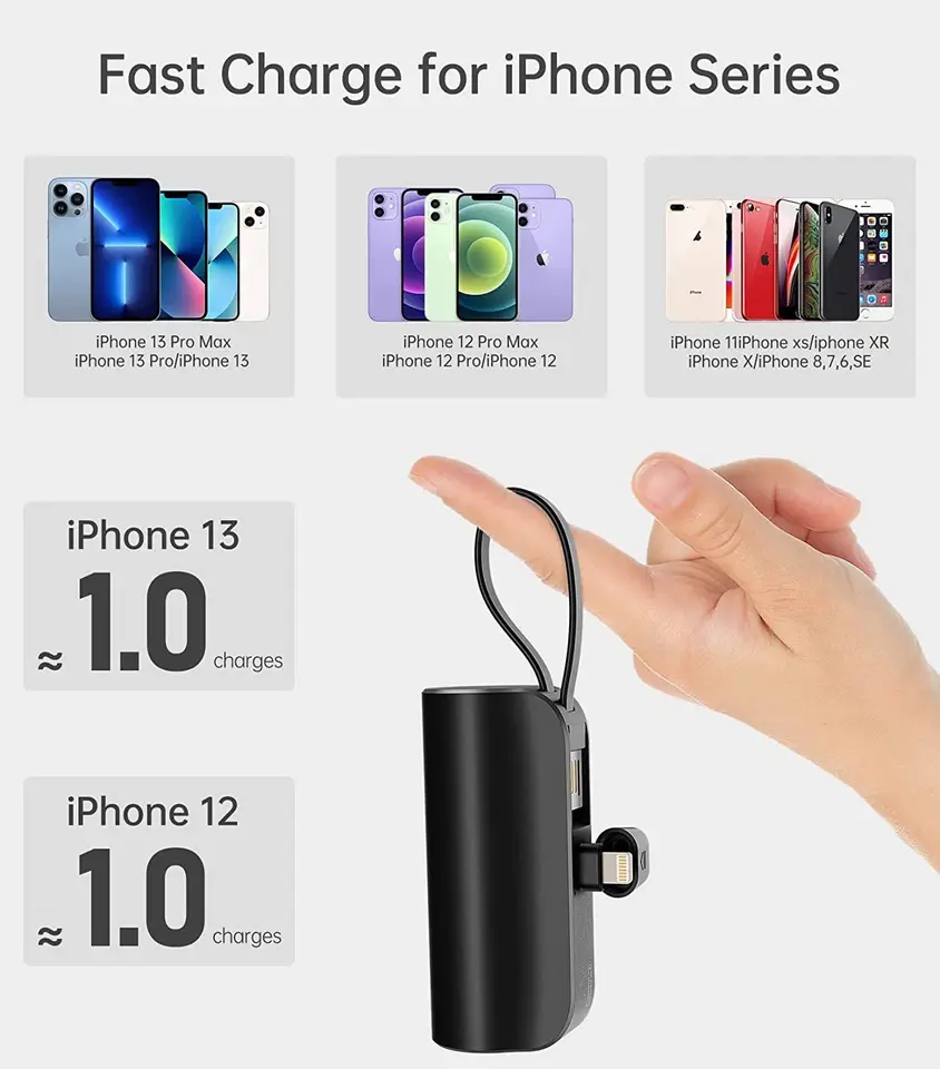 This compact power bank offers a 5000mAh capacity, perfect for on-the-go charging. Ideal for iPhone and Type-C devices, it ensures your gadgets stay powered. The mini size makes it easy to carry, fitting effortlessly into your bag or pocket. No more worrying about dead batteries during travel or daily use.