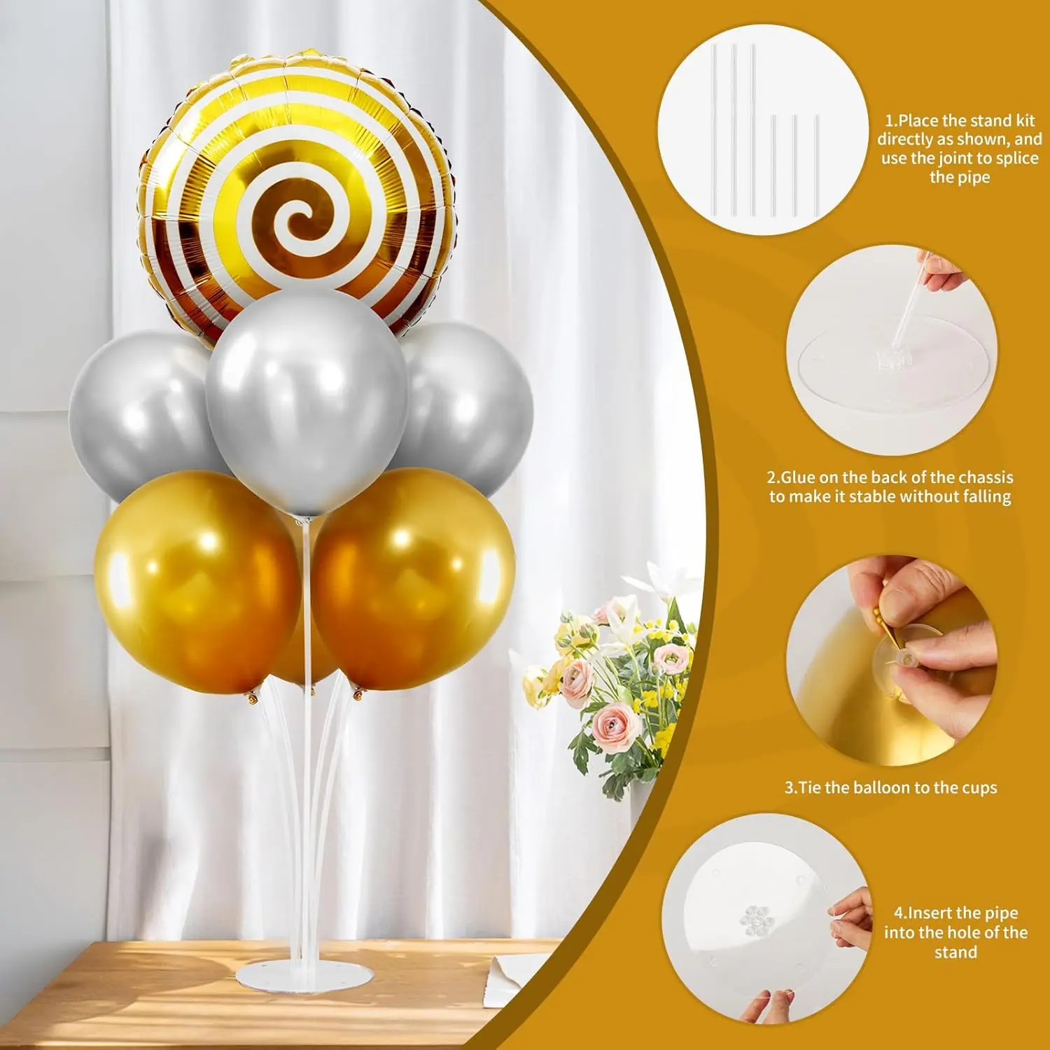 Includes two complete balloon stand sets for table displays or eye-catching photo-ready decorations