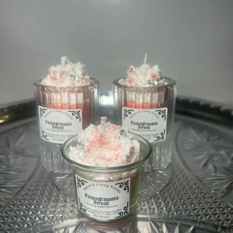 Indulge your senses with this 4oz Pomegranate Sweet scented candle, handcrafted with 100% soy wax. A juicy, vibrant fragrance that brings warmth, sweetness, and a cozy glow to any room.