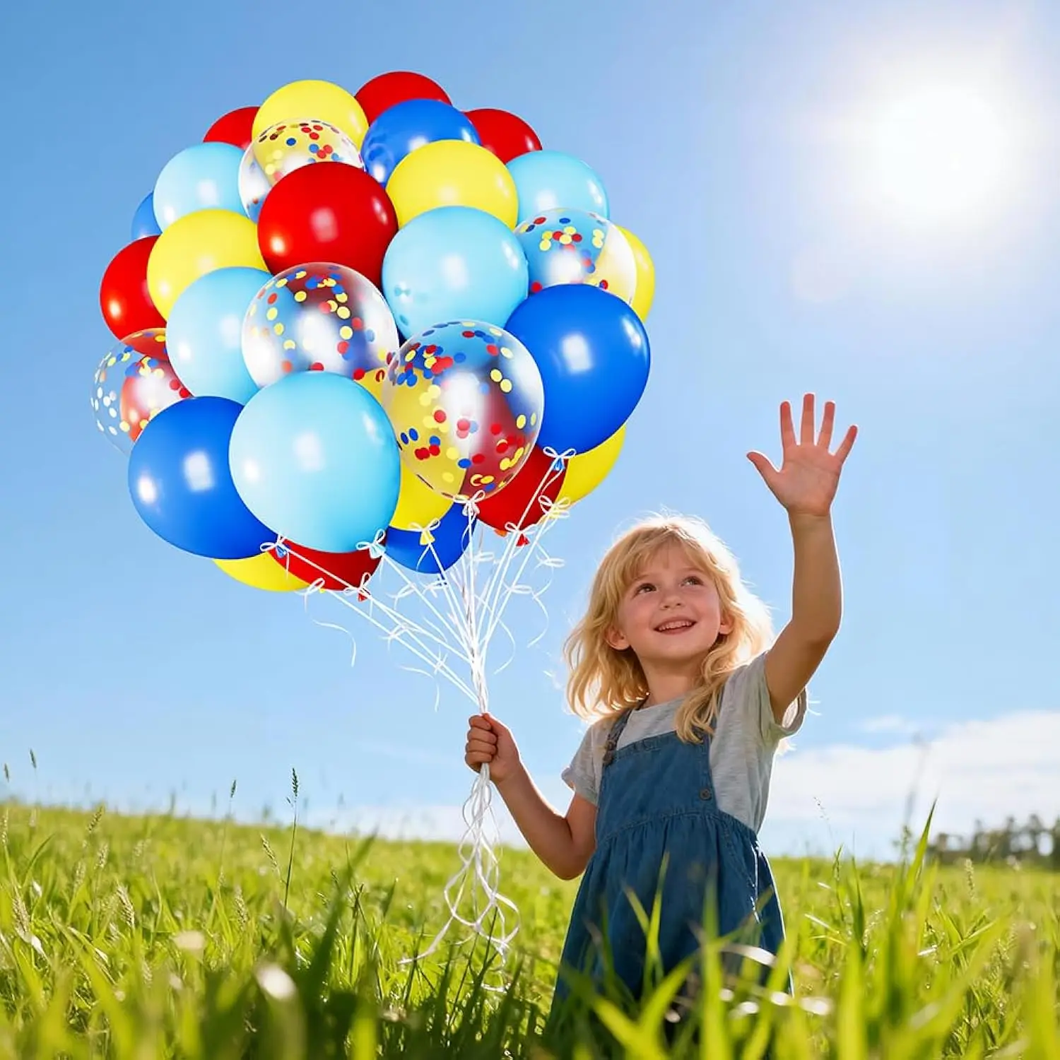 60 Pack 12 Inch Red, Blue & Yellow Confetti Balloons Circus, Carnival, and Celebration Party Kit