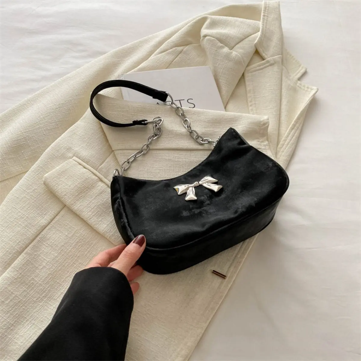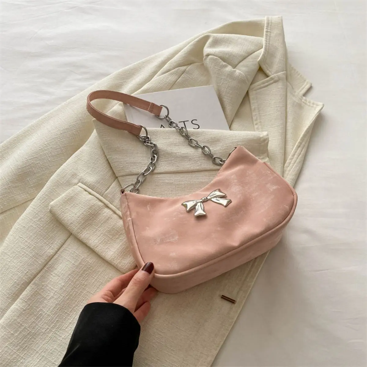 Sweet Little Fresh Bow Handbag Women Korean Armpit Crossbody Bag Chain Shoulder
