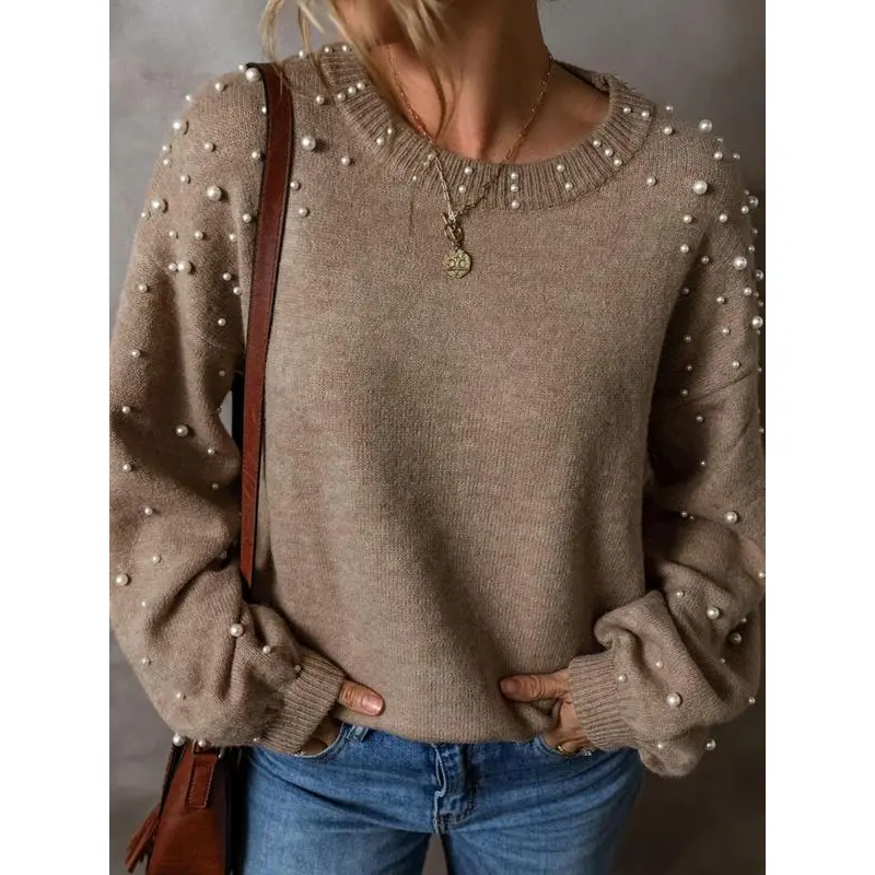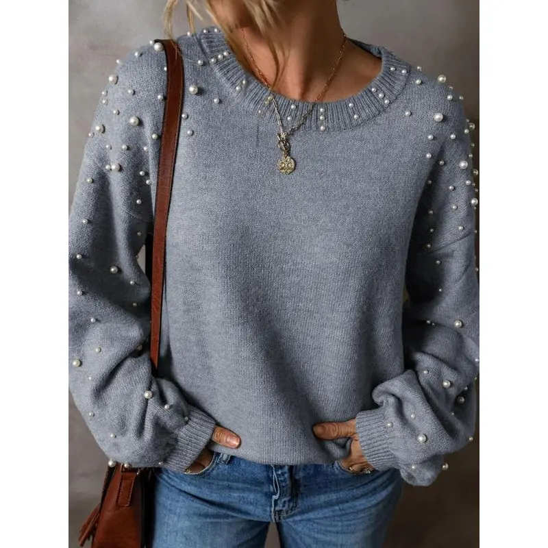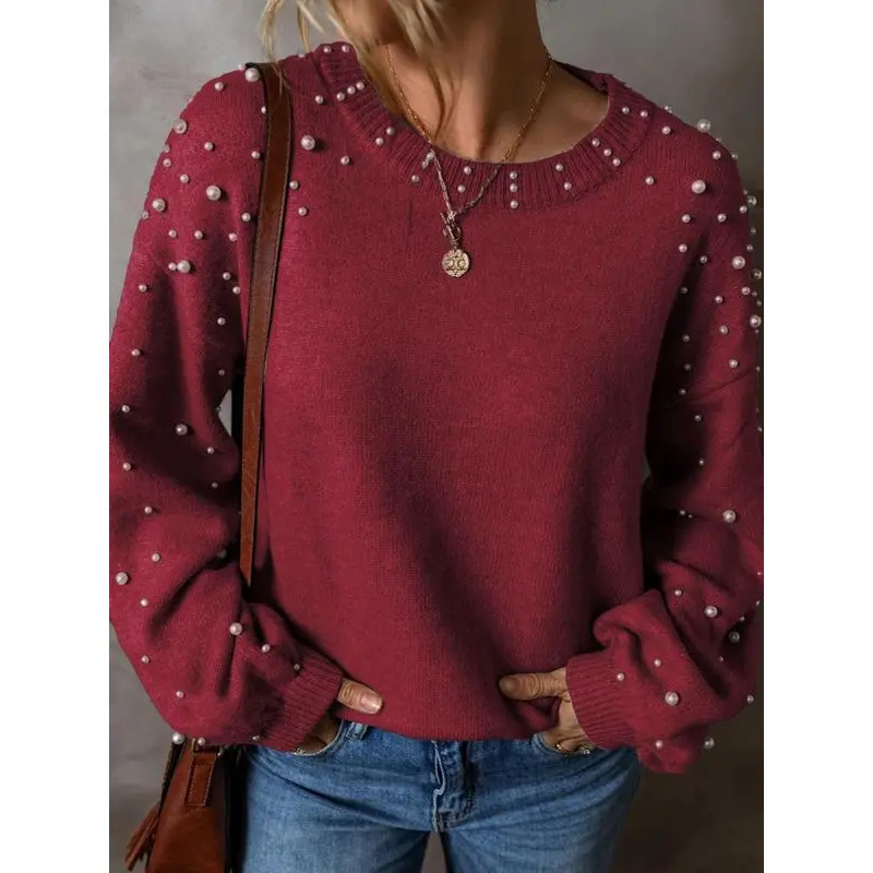 Pattern:PlainFit:Loose-FittingMaterial: PolyesterSleeve Type:Drop ShoulderWashing Instructions:Hand Wash Only,Dry CleanNeckline:Round NeckSeason:Fall&WinterStyle:CasualEmbellishment:Faux PearlsRegion Of Origin:ChinaClothing Length:RegularComposition:PolyesterWeaving Method:KnittingSleeve length: long sleeveQuantity Per Pack: