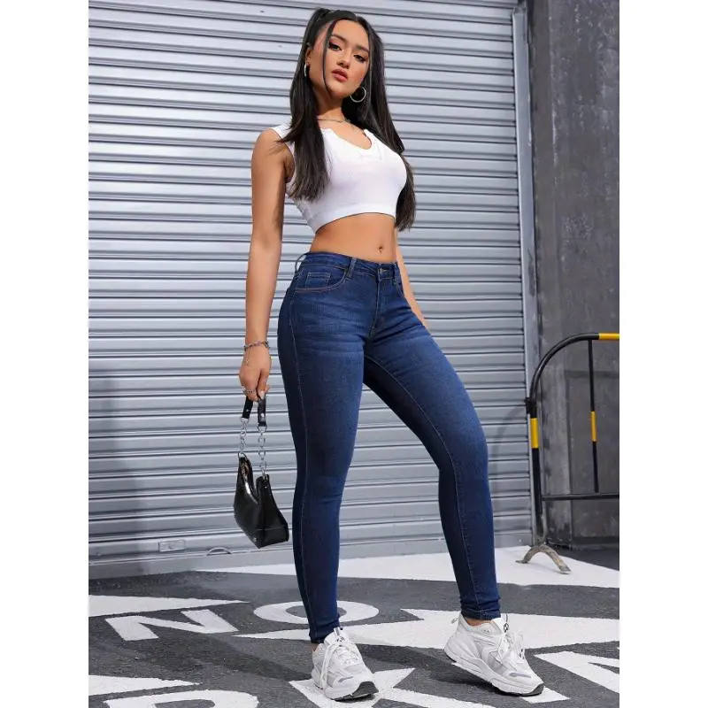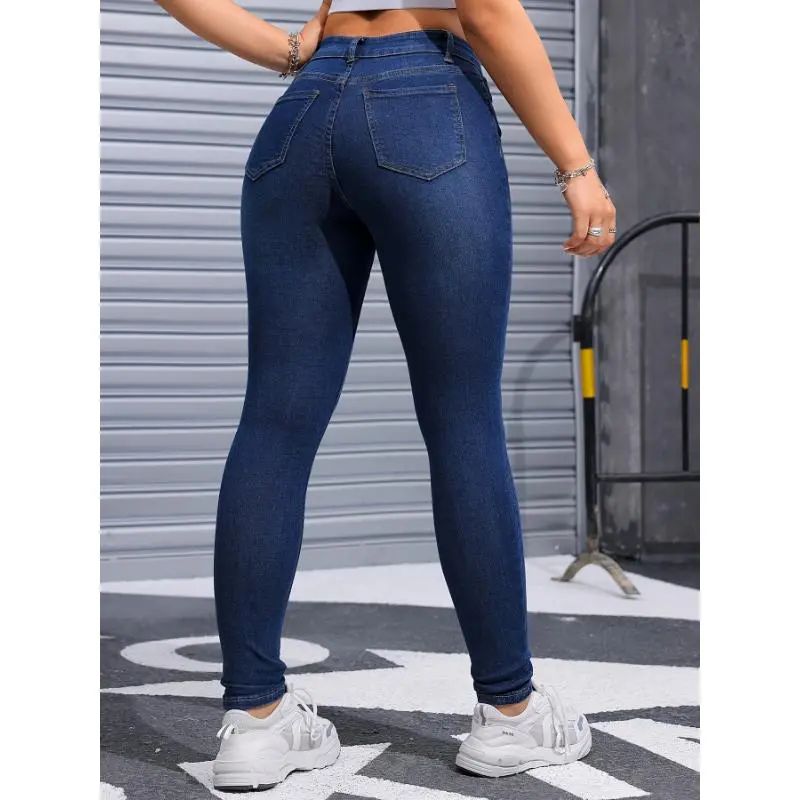 High Stretch Slim Fit Blue Denim Jeans - Soft, Comfortable, and Elegant Womens Casual Pants with Slant Pockets - Hand Wash Only, All-Season Wear, No Printing, Woven Fabric