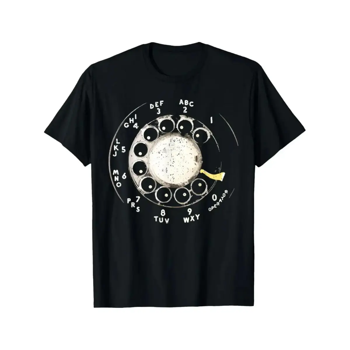 Vintage Rotary Phone Dial Pattern Graphic T-Shirt, y2k Fashion Casual Streetwear Humor Shirt for Men Women, Comfortable & Breathable Material, Everyday Outfit, Trendy Aesthetic Outfit 2026, Gifts, SuperYi