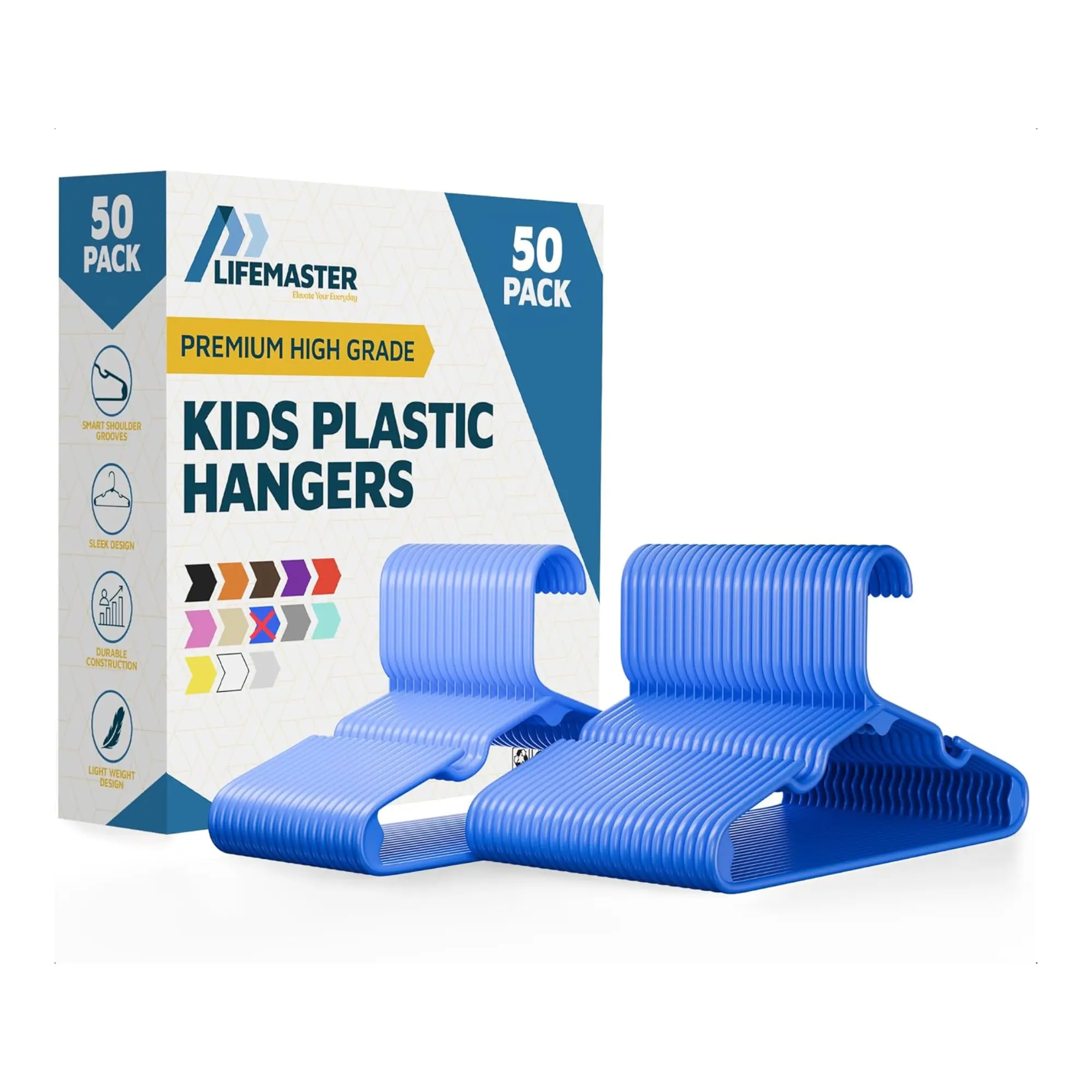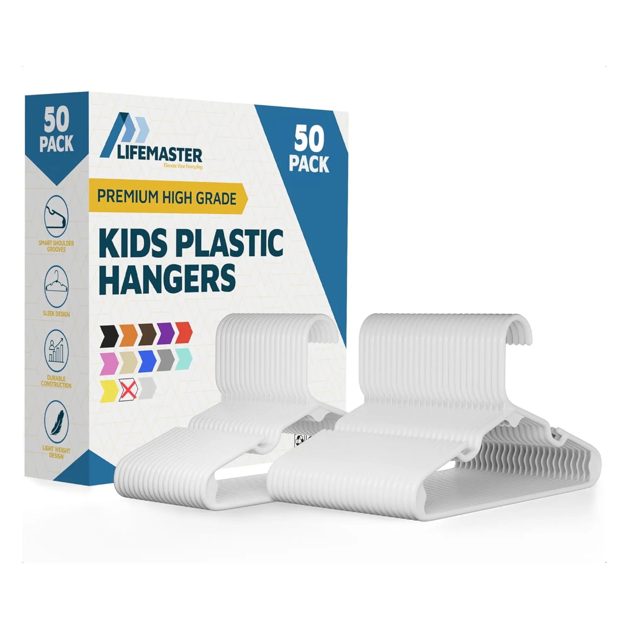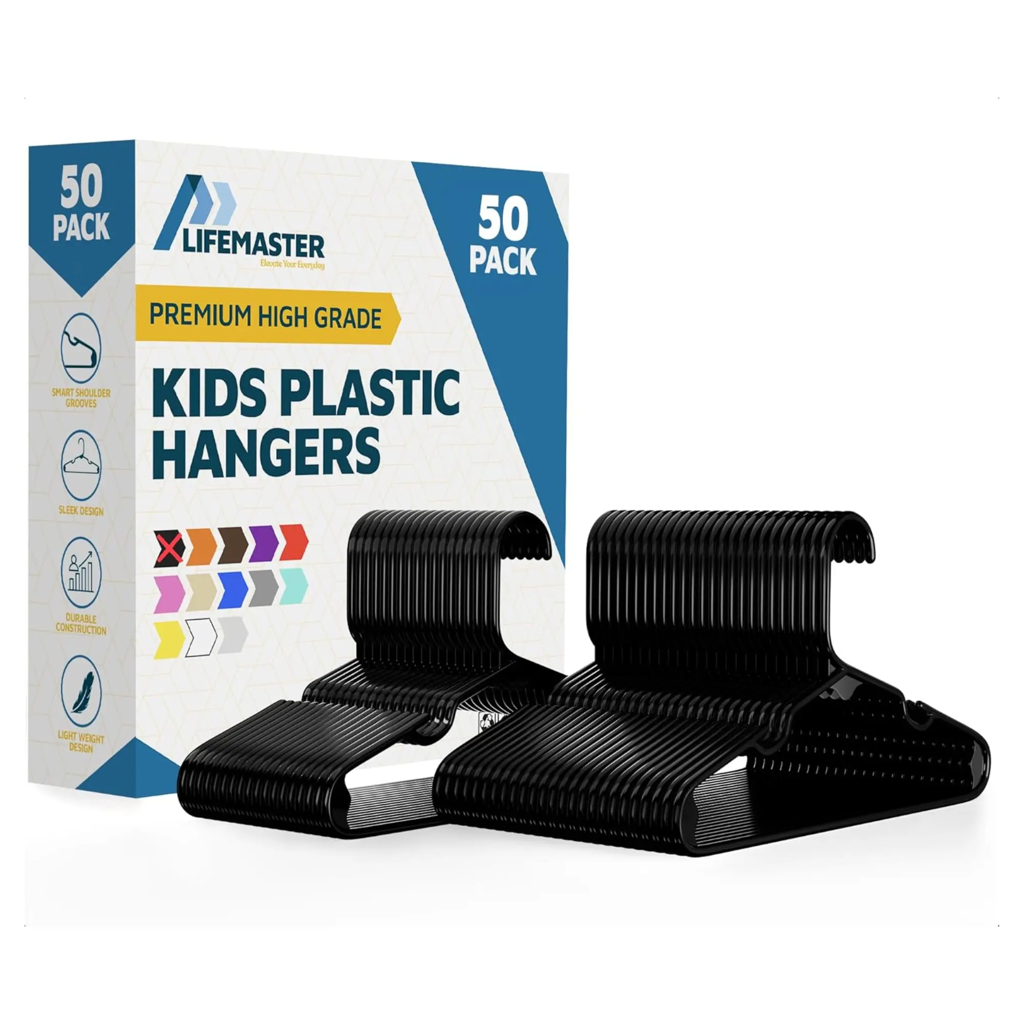 Lifemaster Plastic Kids Clothes Hangers – Children Clothes Hanger with Shoulder Notch, 11.6 Inch Space-Saving Closet Organizer for Baby, Toddler, and Kids Clothing, Hold Up to 5 lbs, Pack of 50