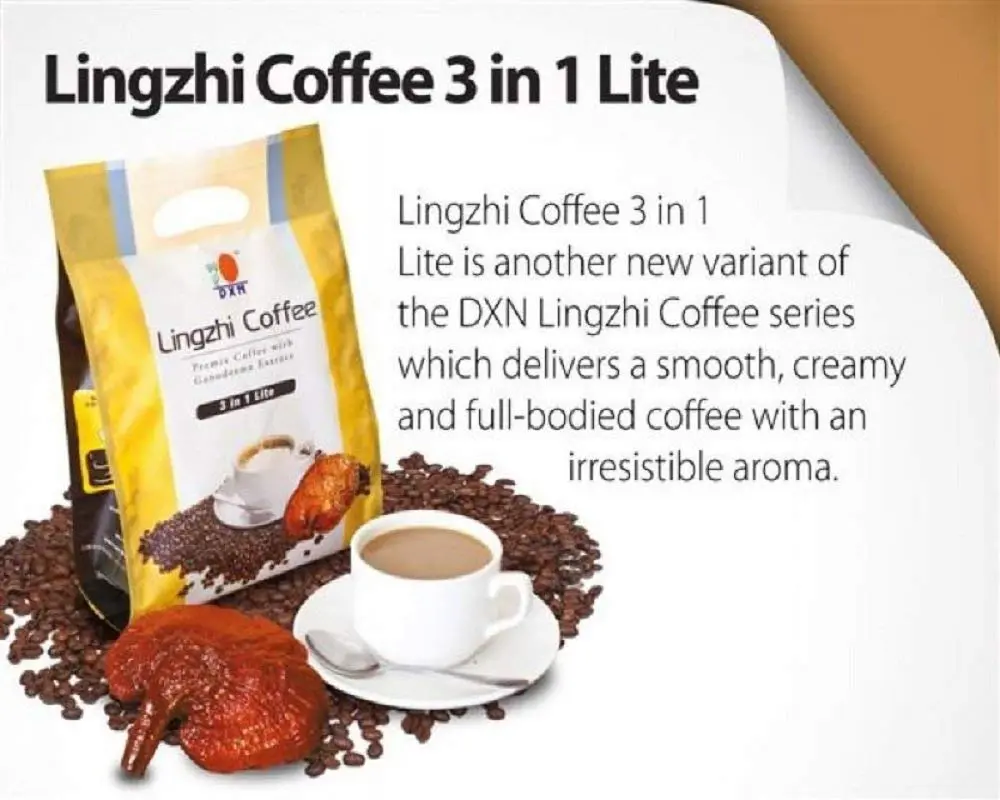 ·Everyone loves how easy it is to make instant coffee. If you prefer a little more creamy taste to your coffee, reach for our Lingzhi Coffee 3 in 1 Lite. It is another new variant of the DXN Lingzhi Coffee series which delivers a smooth and full-bodied coffee with an irresistible aroma. Just add one sachet of the Lingzhi Coffee 3 in 1 Lite into 150ml of hot water and stir to enjoy a sensational new coffee experience with DXN.