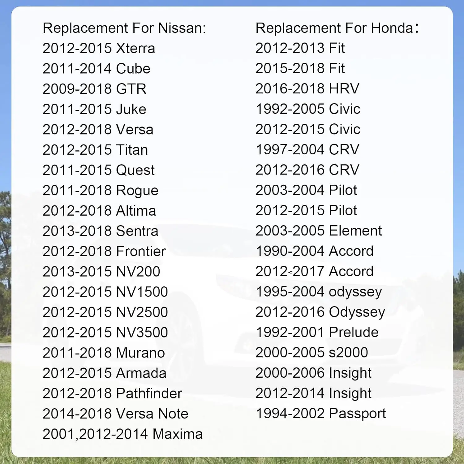 ·【Replacement For Nissan Cars】2012-2015 Xterra, 2011-2014 Cube, 2009-2018 GTR, 2011-2015 Juke, 2012-2018 Versa, 2012-2015 Titan, 2011-2015 Quest, 2011-2018 Rogue, 2012-2018 Altima, 2013-2018 Sentra, 2012-2018 Frontier, 2013-2015 NV200, 2012-2015 NV1500, 2012-2015 NV2500, 2012-2015 NV3500, 2011-2018 Murano, 2012-2015 Armada
