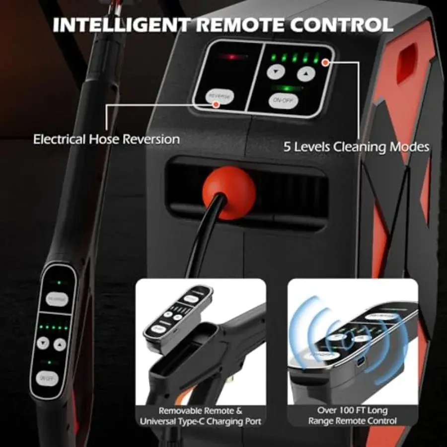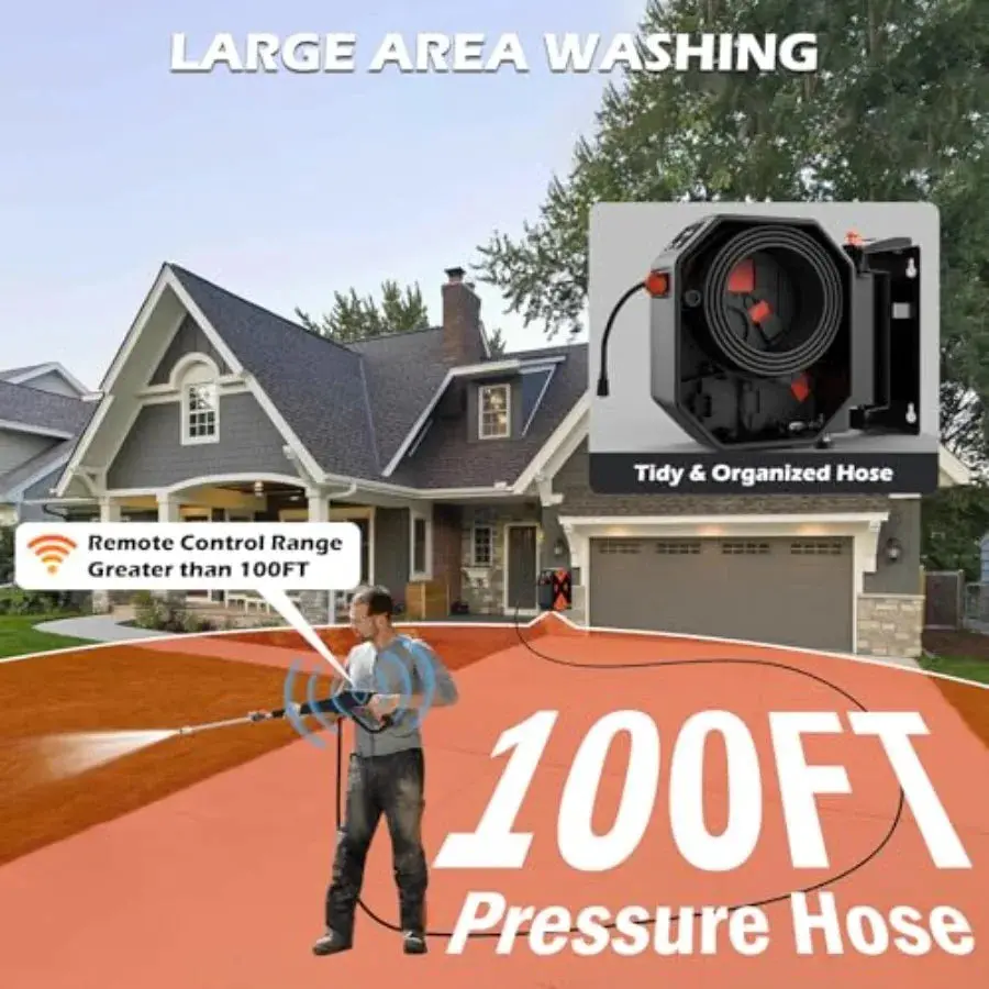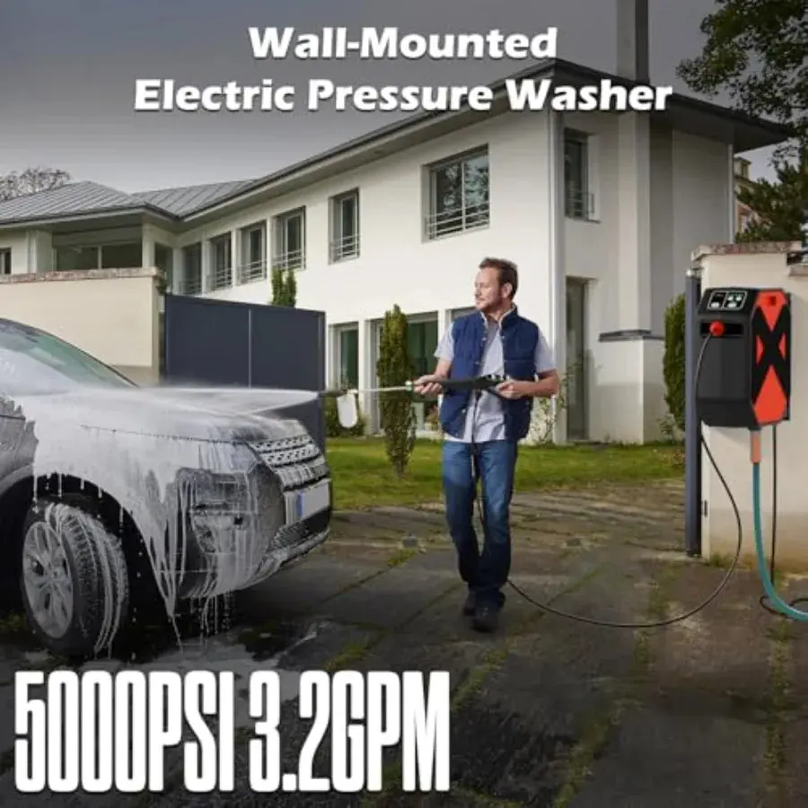 Wall Mounted Pressure Washer with 5000PSI High-Pressure Power 100FT Retractable Hose 5-Stage Adjustable Pressure Settings Foam