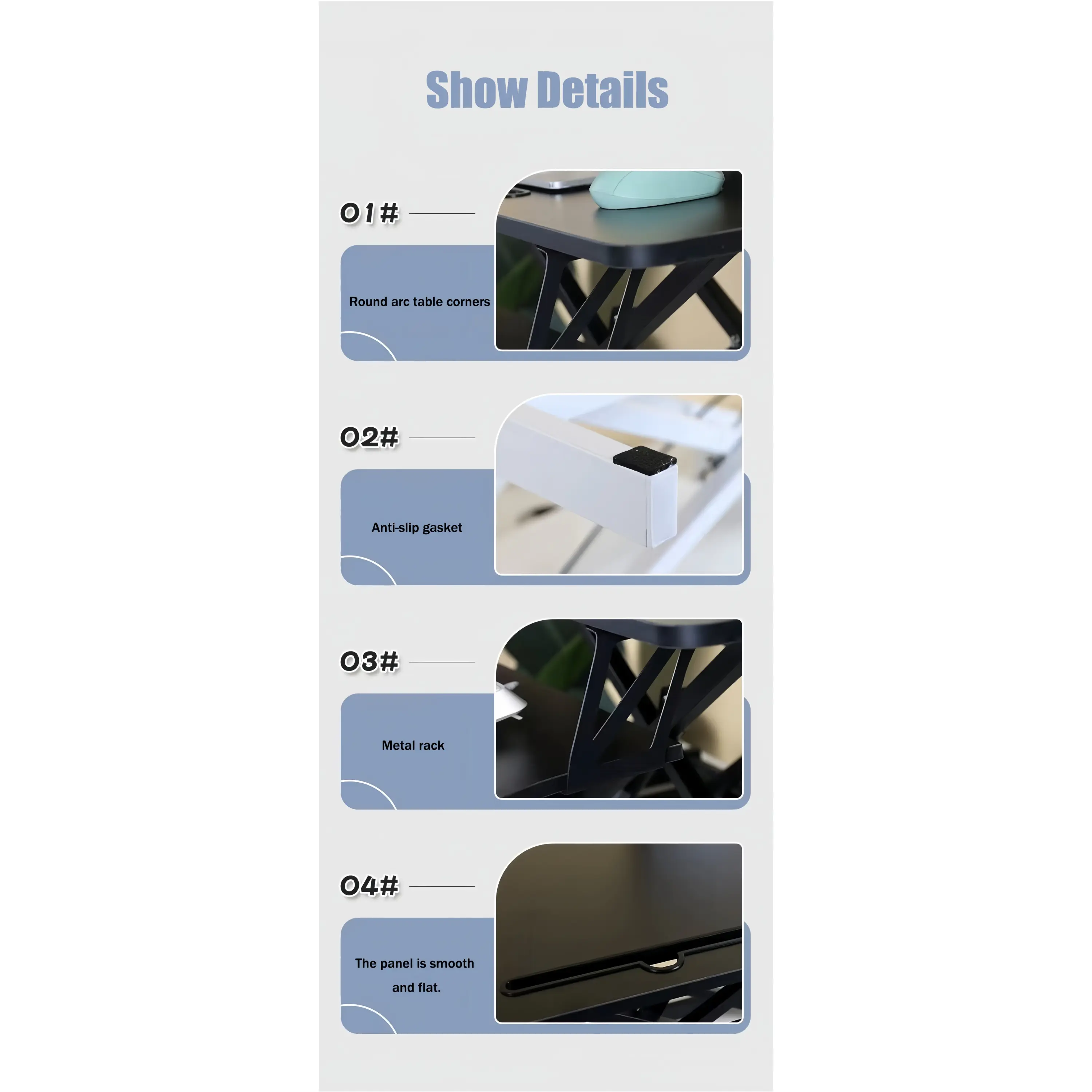·Ergonomic design standing desk. The solid structure keeps your desk riser steady and the maximum weight hold up to 30 lbs.