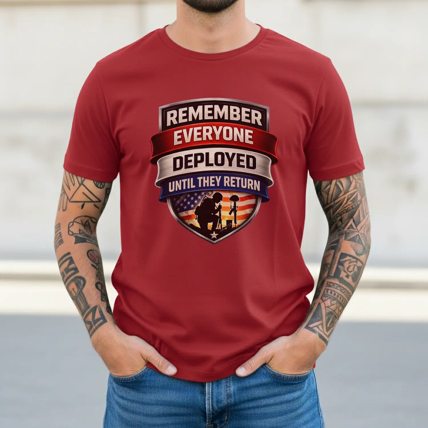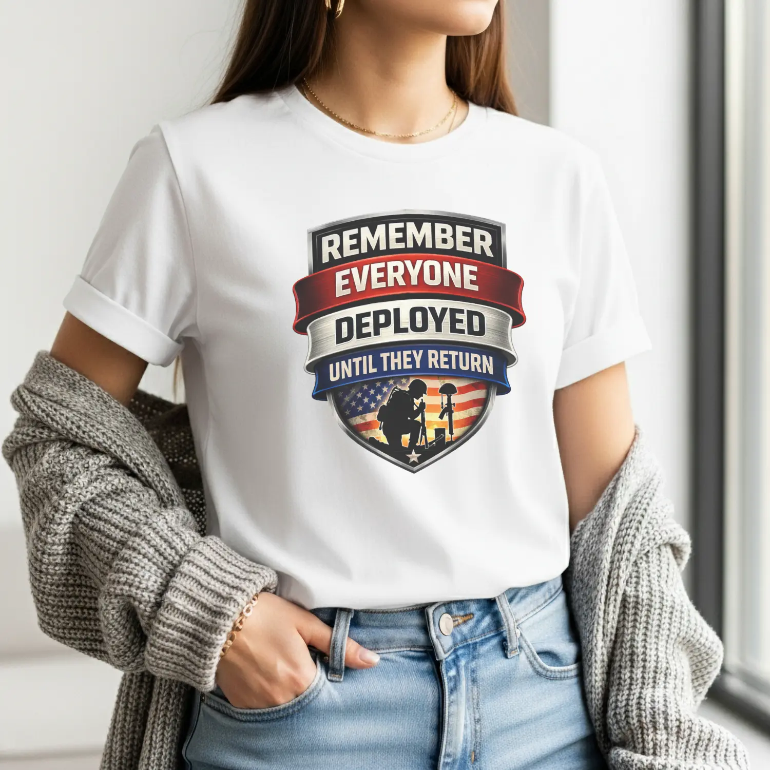 Show your support in a way that speaks without words. This “Remember Everyone Deployed Until They Return” shirt reflects respect, honor, and gratitude for those serving away from home.