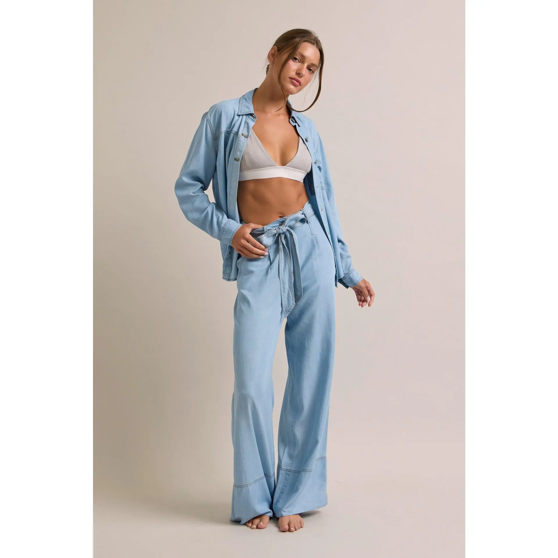 Wide Leg Chambray Pants