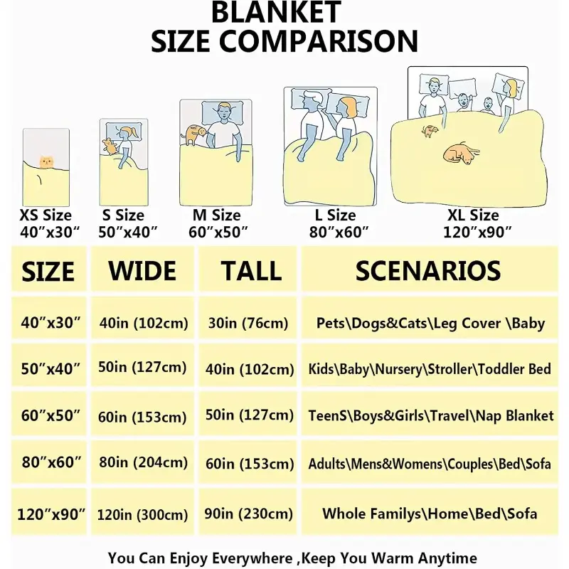 Size Options: Available in four sizes to suit your needs: 30x40 inches (smaller size) 40x50 inches (suitable for small children under 50 inches tall) 50x60 inches (suitable for people under 63 inches tall) 80x60 inches (suitable for people under 70 inches tall) Versatile Use: Ideal for the couch,sofa,bed,farmhouse,home decor,picnic,gym,yoga,table cloth,and travel blanket.