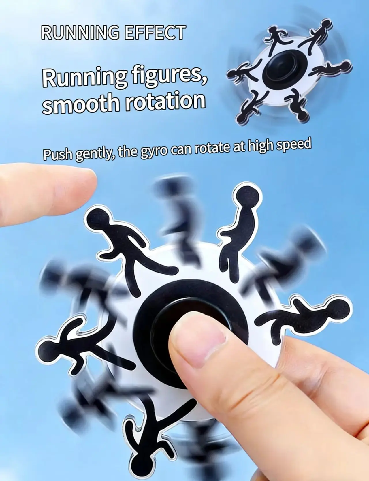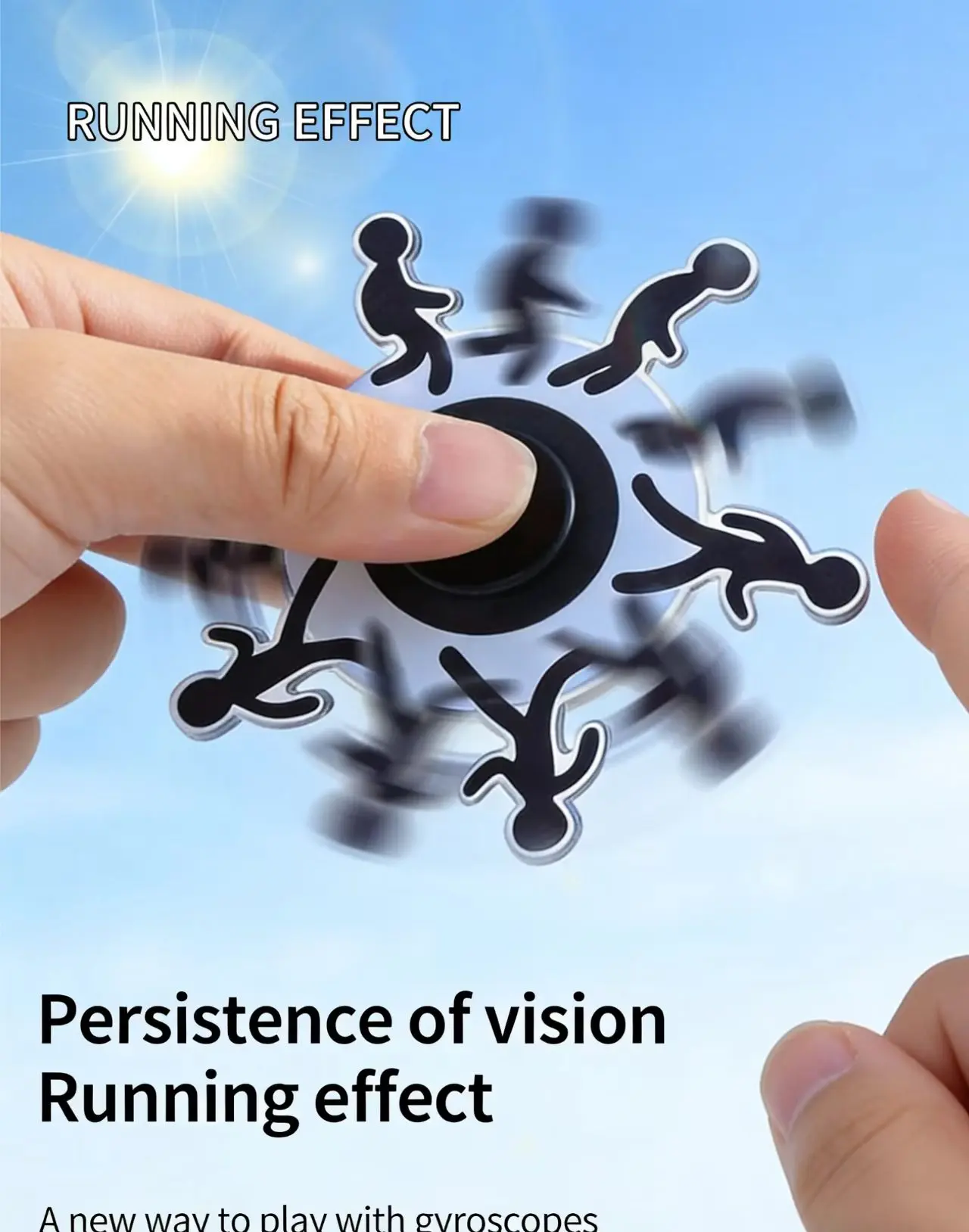 Tired of boring fidget toys? This isn't your average spinner! Watch in amazement as the static stick figures come to life, creating a seamless, hypnotic "running man" animation the second you spin it—all thanks to the science of persistence of vision.