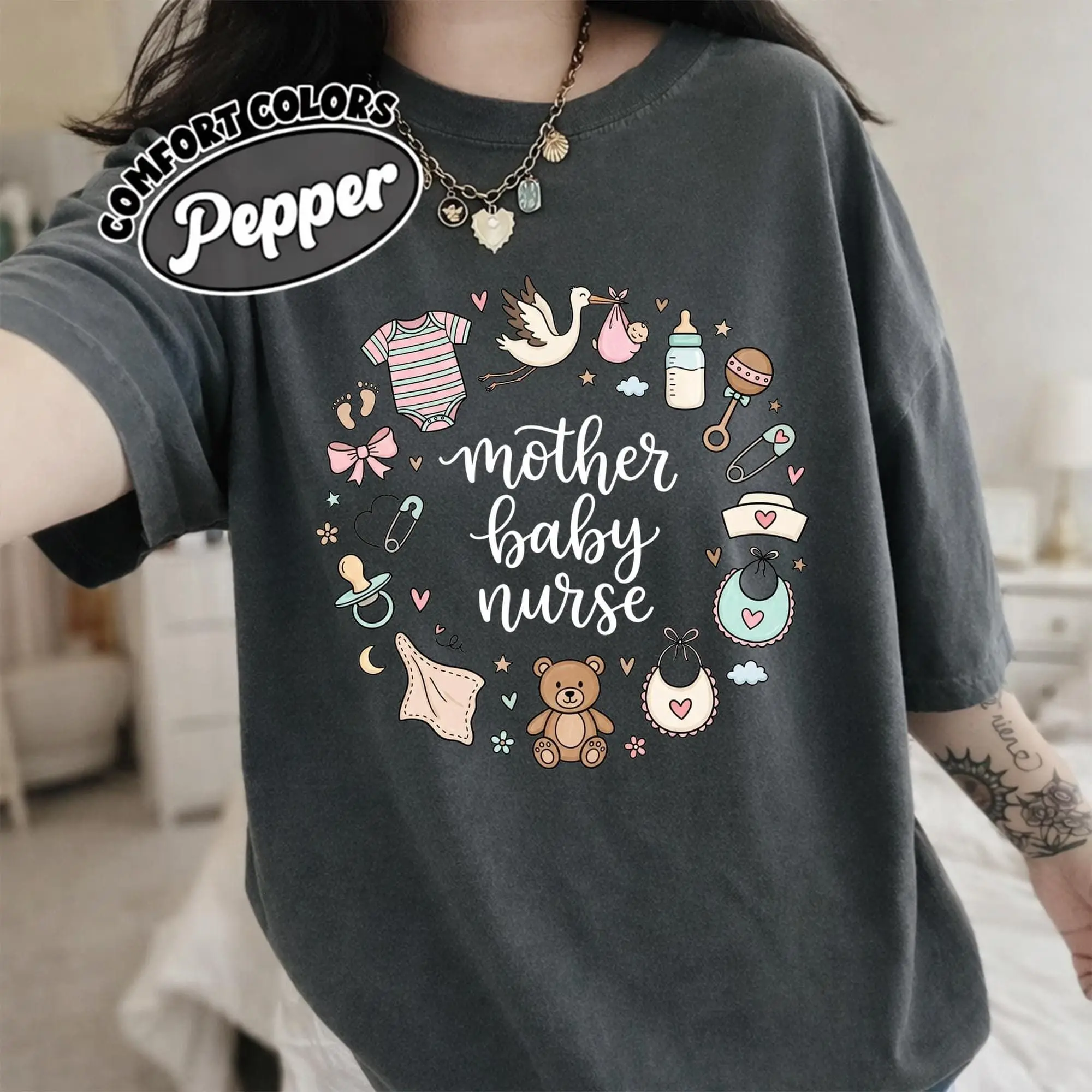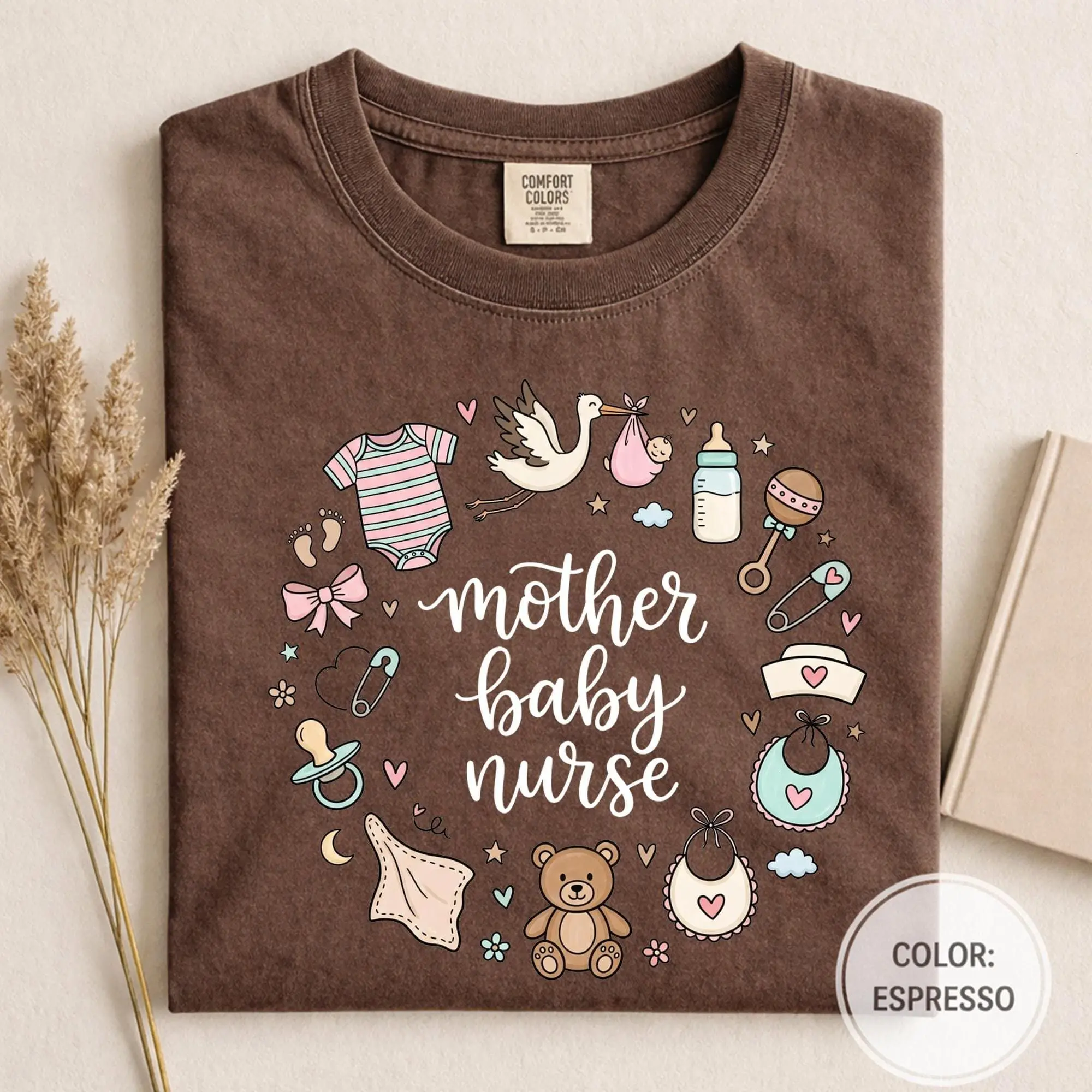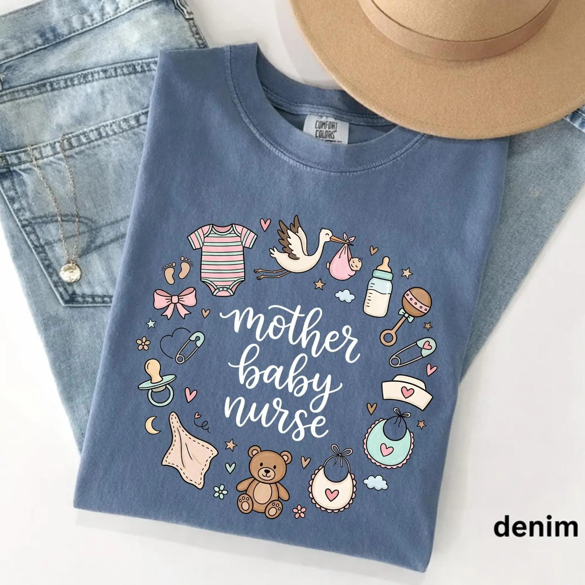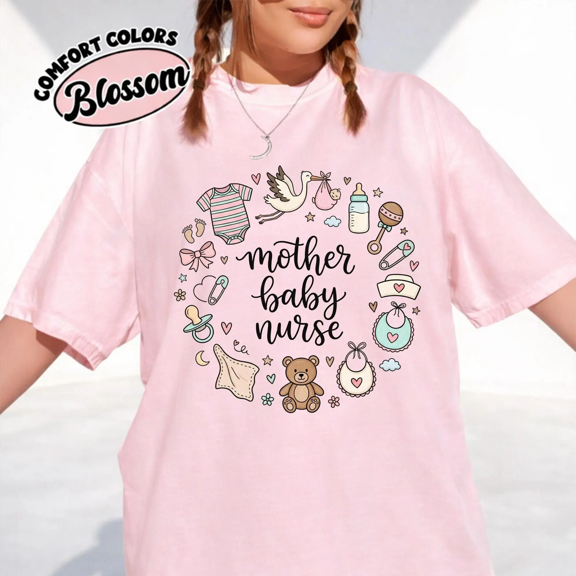 Mother Baby Nurse T-Shirt - Whimsical Comfort Colors Gift For Postpartum Nurse L&D RN MBU Unit