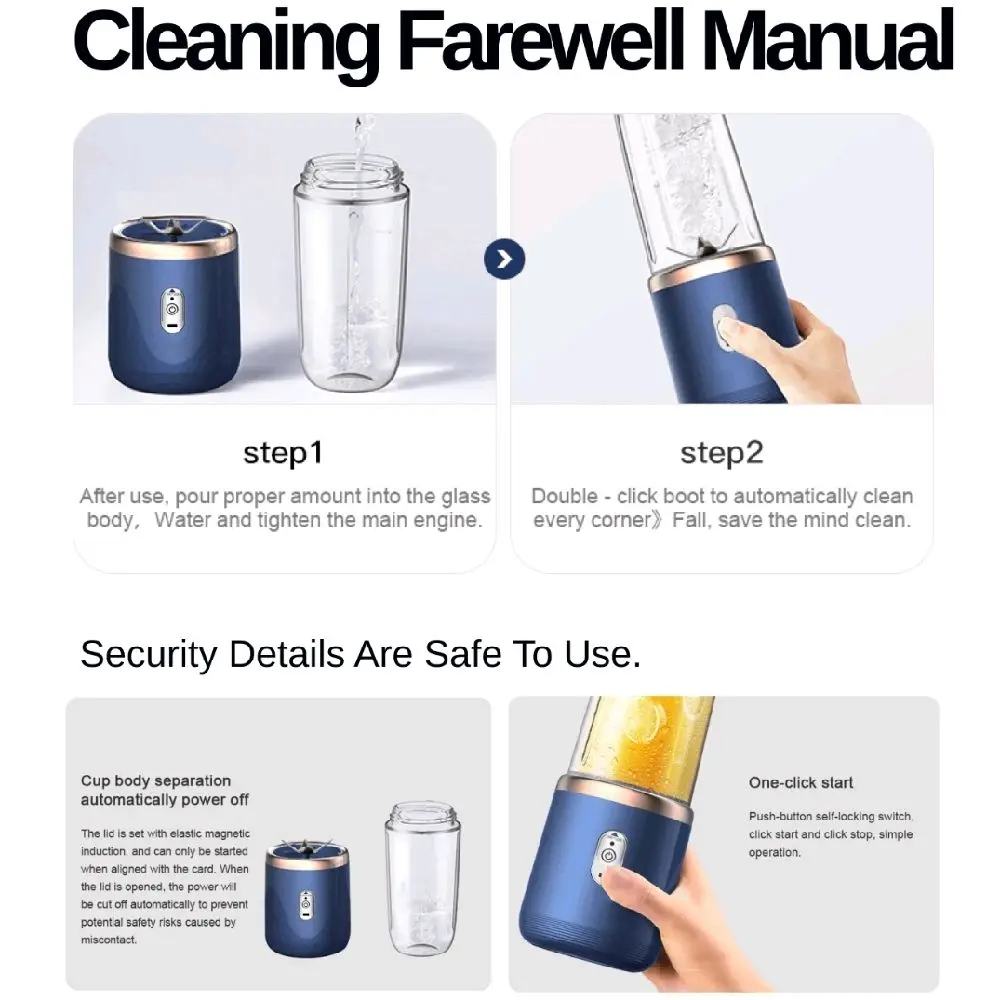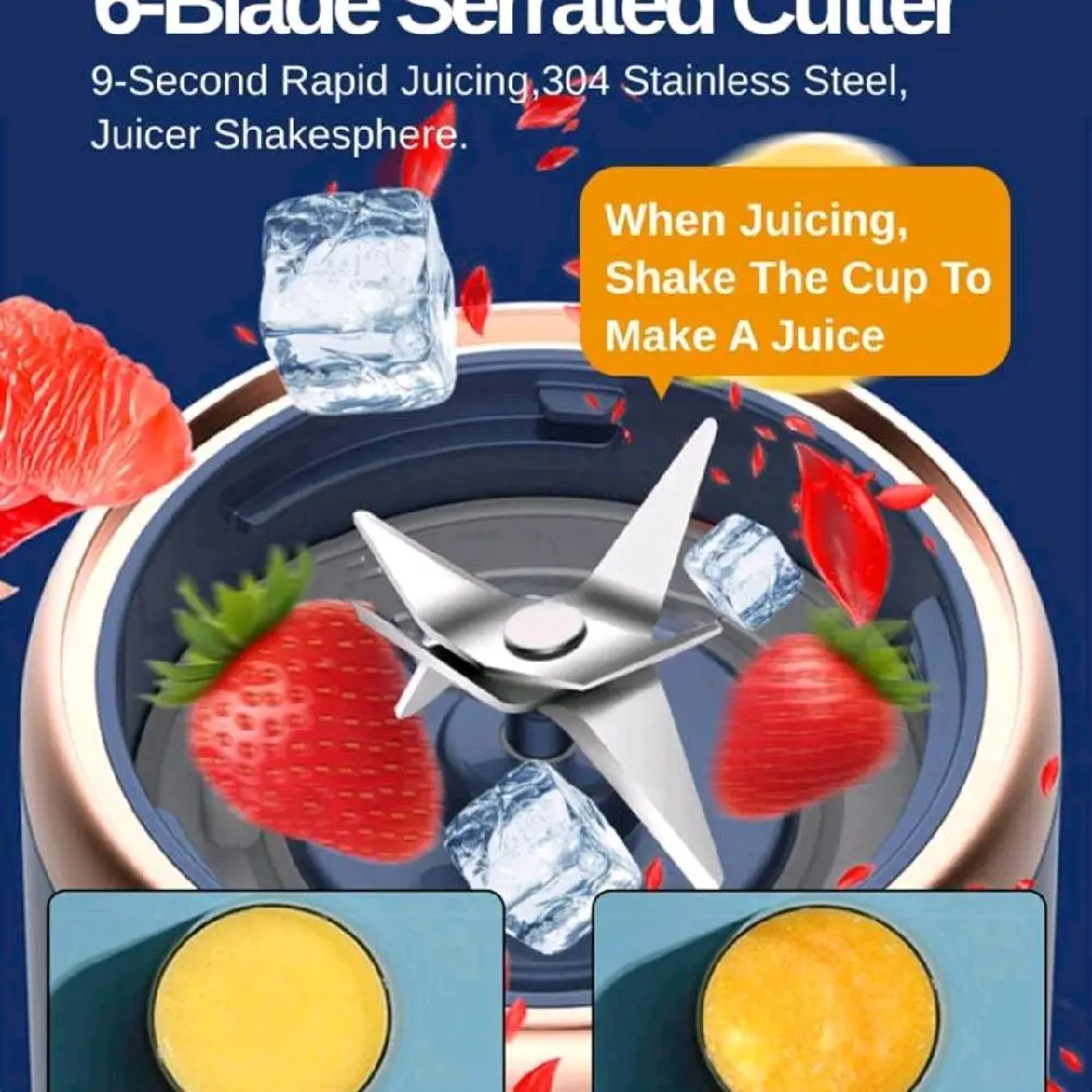 This 400ml wireless portable blender is perfect for on-the-go use. It features a USB rechargeable design, making it ideal for home or outdoor use. The mini fruit juicer mixer comes with 6 blades for efficient blending. It's a dual cup multi-functional juice cup blender, suitable for vegetables and fruits. Ideal for kitchen food processing, it's a versatile addition to your kitchen.