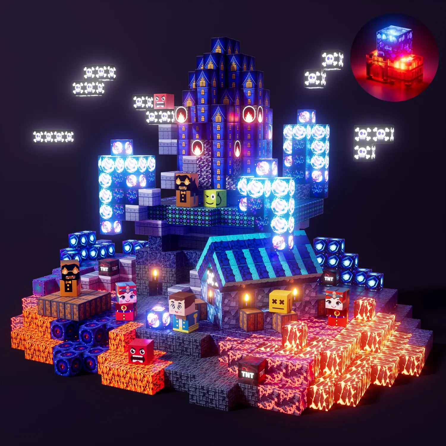 Light Up Magnetic Blocks 150/100pcs, Glowing Blue Castle Magnetic Building Set, Magnetic Cubes with LED, STEM Montessori Sensory Toys for 3-8 Kids, Spatial Reasoning & Outdoor Play, Preschool Christmas Gift for Boys Girls