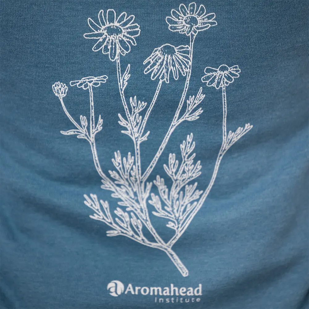 This lightweight, soft and relaxed, heathered teal hoodie will be your go to for staying comfortable and grounded as you explore the outdoors or continue your aromatherapy education. It features the Aromahead Institute logo on the front and a large German chamomile design on the back, screen-printed in white. Its ribbed cuffs and waistband, hood with white drawstrings, and full zip closure make this sweatshirt an easy-going classic.