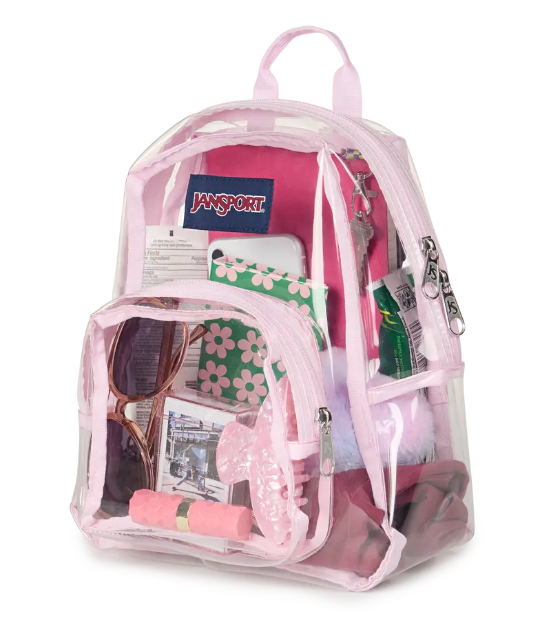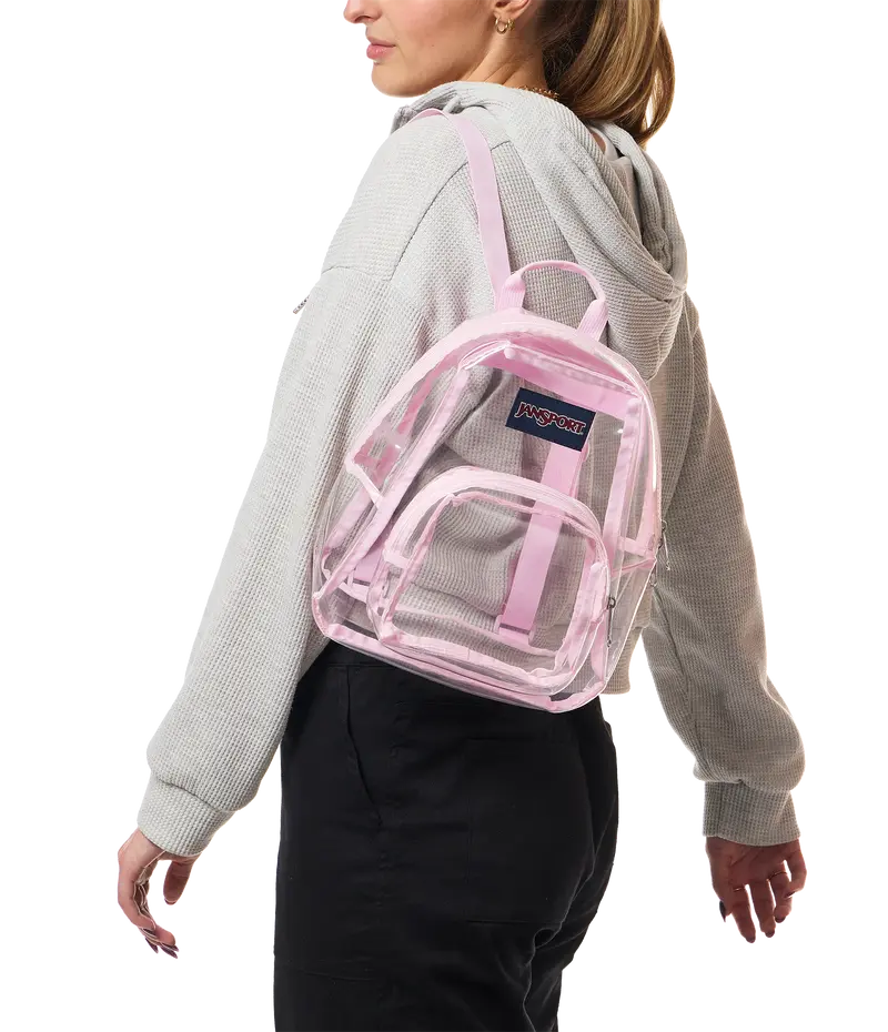 Our Clear collection lets you see all your stuff from the outside. Perfect for festivals, the Clear Mini Pack has just the right amount of space, with one main compartment and a front zippered stash pocket. Adjustable shoulder straps let you choose the right fit. Clearly this bag is for you.